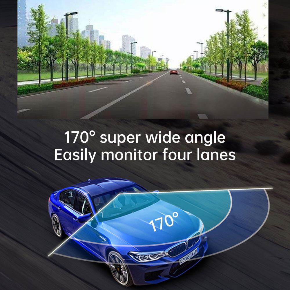 5. 170 Degree Ultra High-definition wide-angle lens, can shoot the car’s front without blind area.