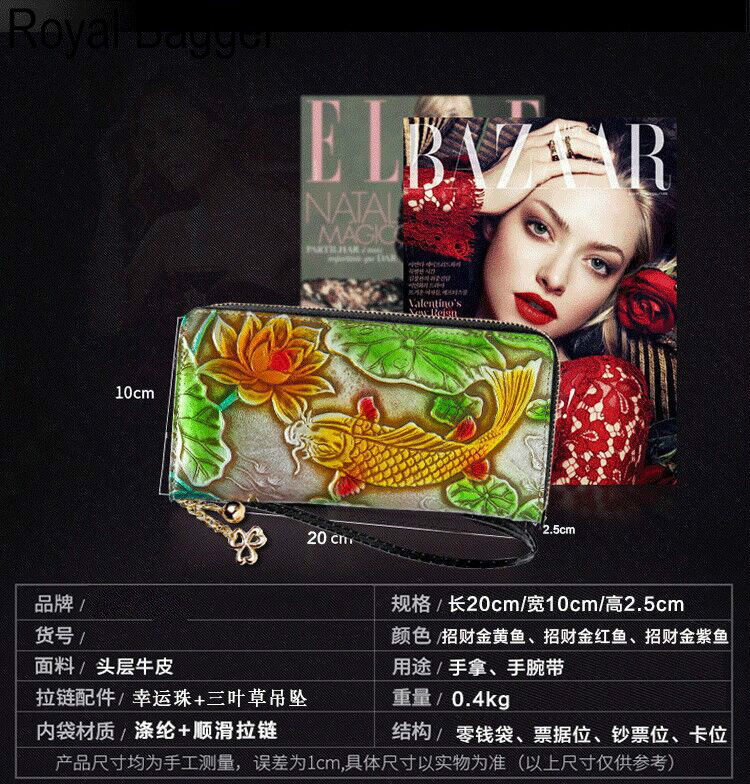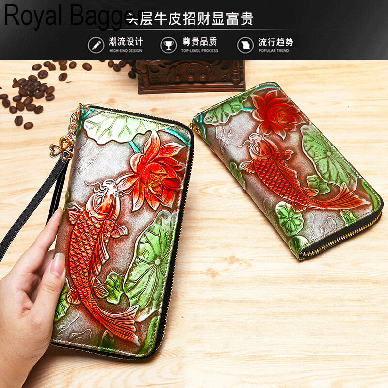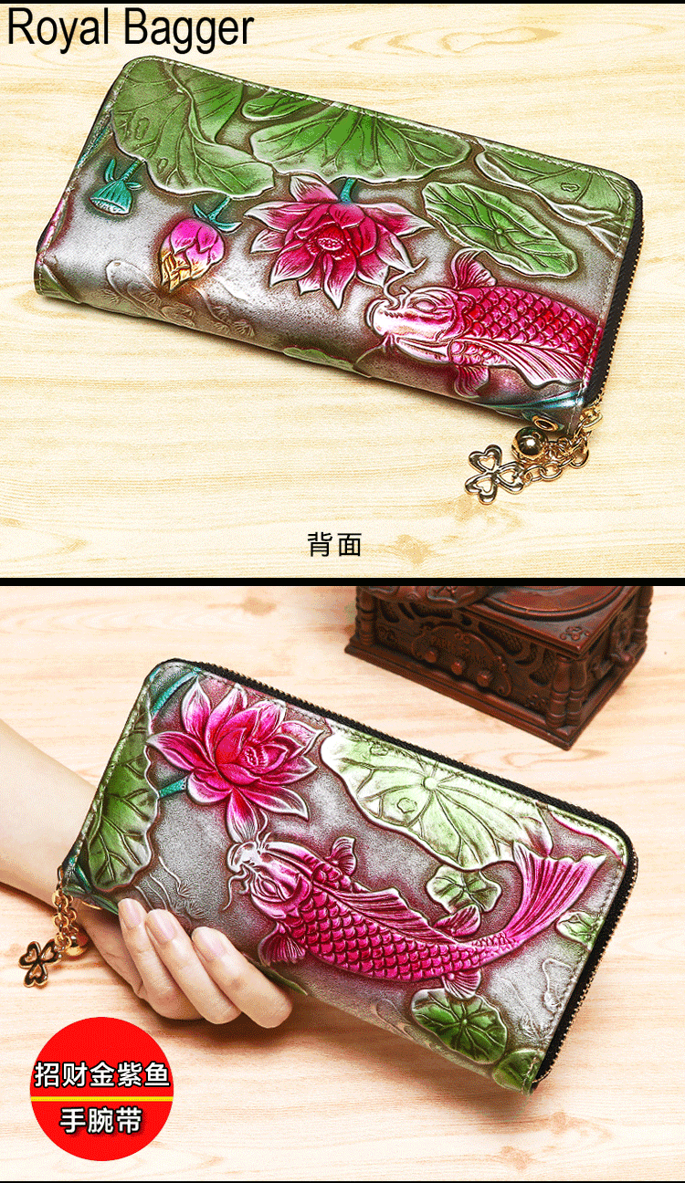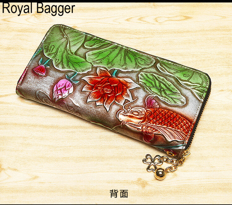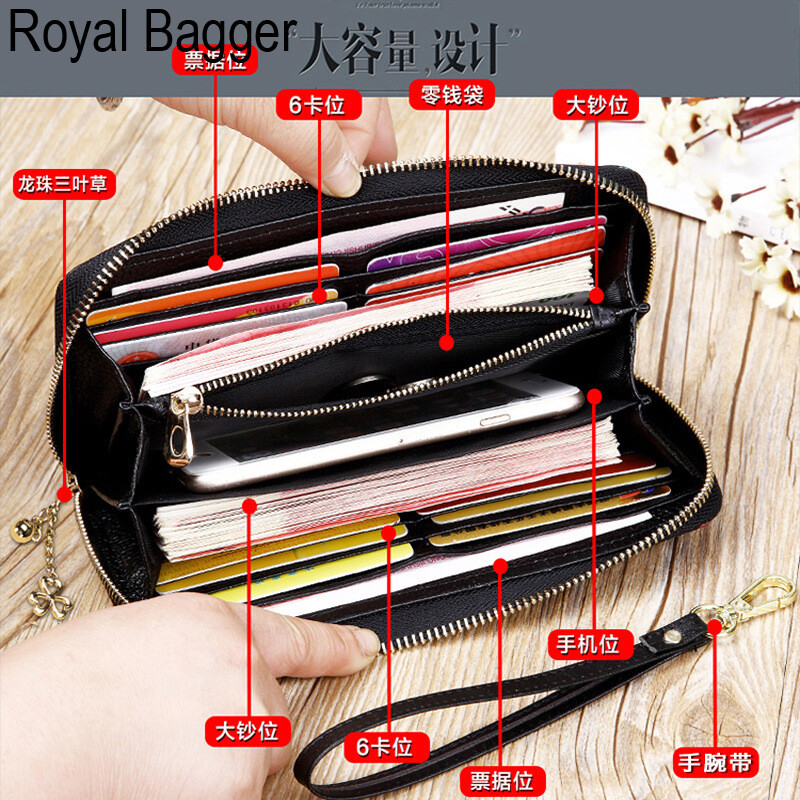 Royal Bagger New Fashion Zipper Long Wallet Purse For Women Genuine Cow Leather Retro Clutch Bag Munti-Card Position Phone Bag