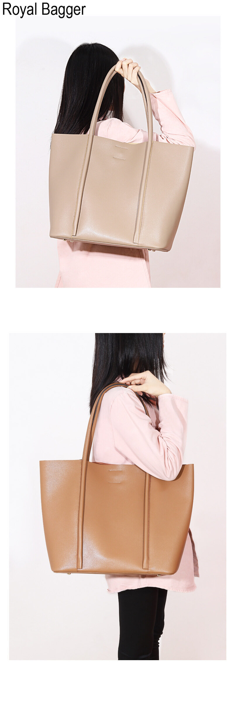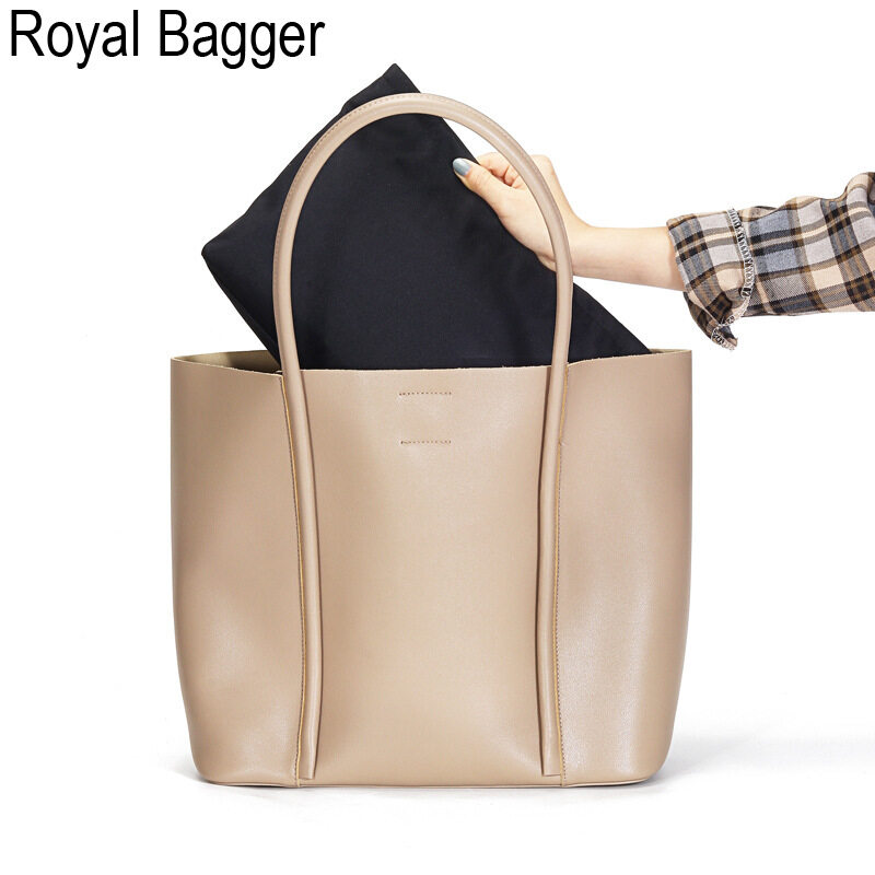 Royal Bagger New Fashion Tote Bag For Women Genuine Cow Leather Casual Large Capacity Shoulder Bag Elegant Ladies Girl Crossbody