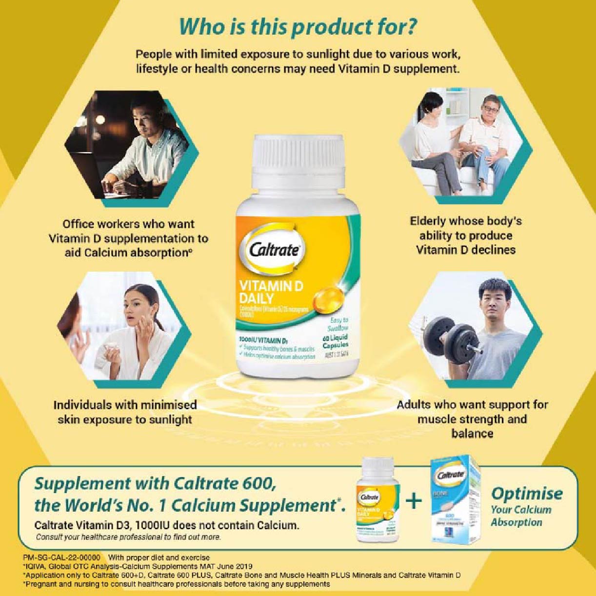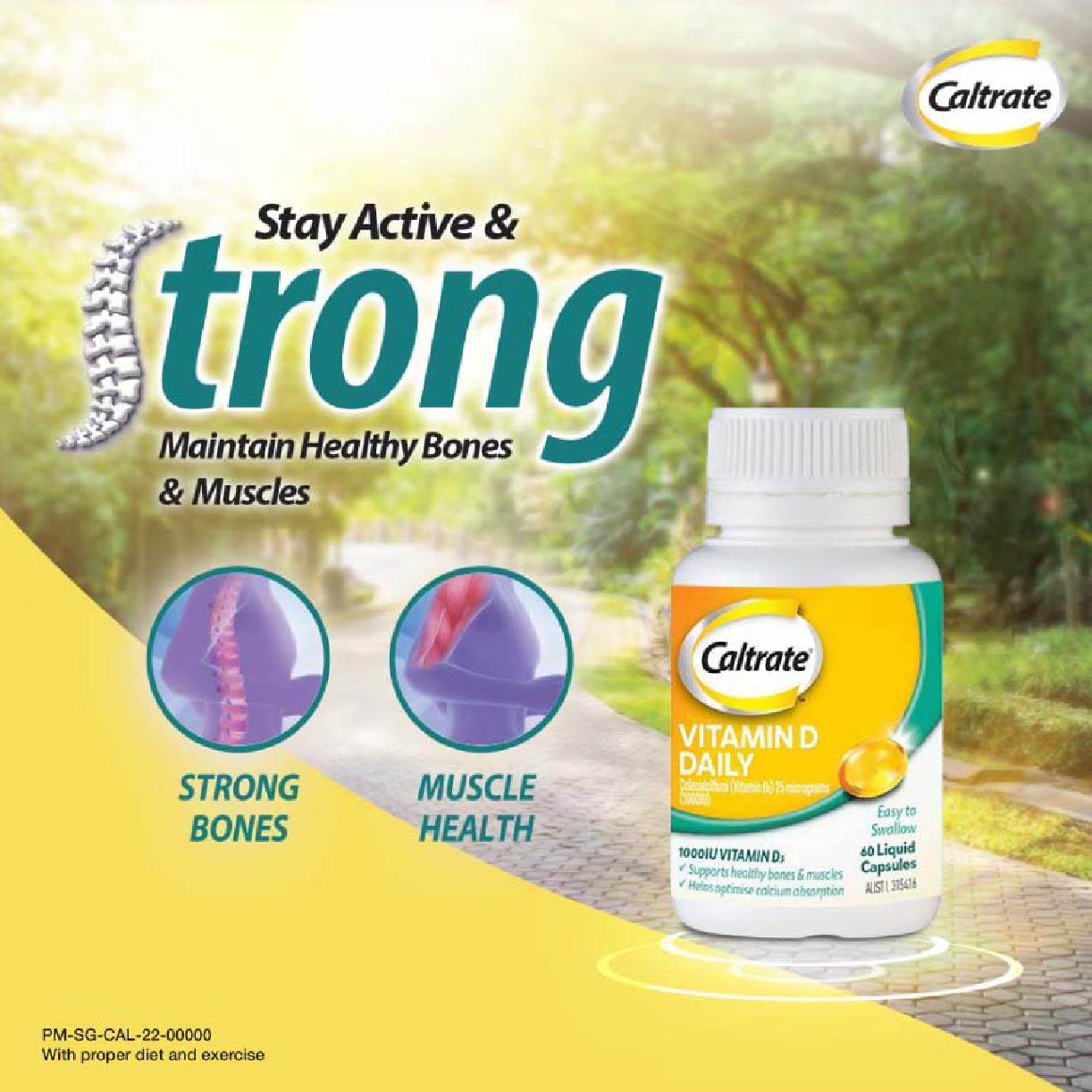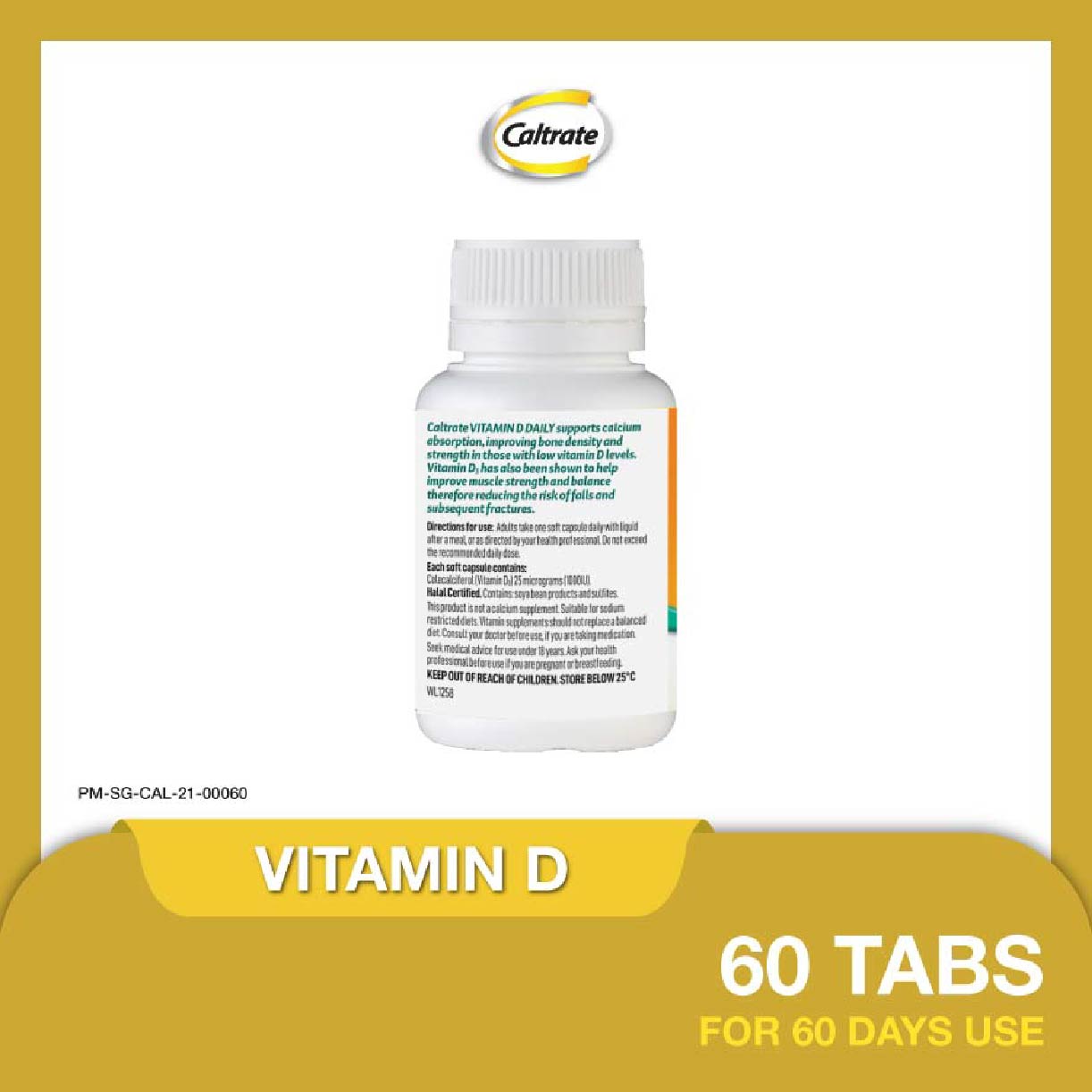 Caltrate® Vitamin D 1000IU is a once daily Vitamin D supplement. Each capsule provides 1000IU of Vitamin D3 in a convenient, easy to swallow liquid capsule. It is essential to support healthy bones and Calcium absorption and is from a trusted Calcium brand, Caltrate®.
