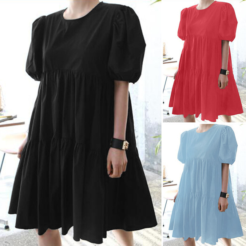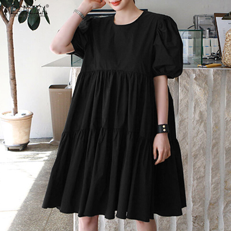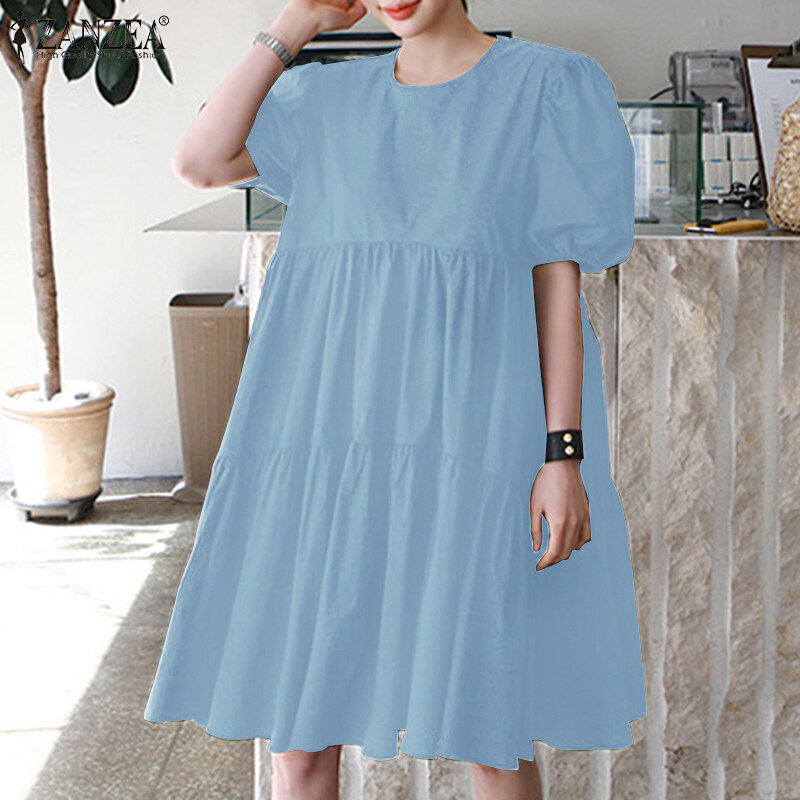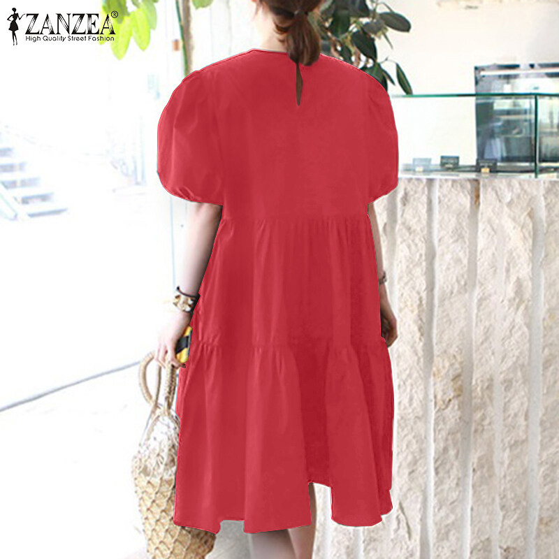 ZANZEA Women Summer Sundress Holiday Travel Fashion Club Beach Tiered Mini Dress