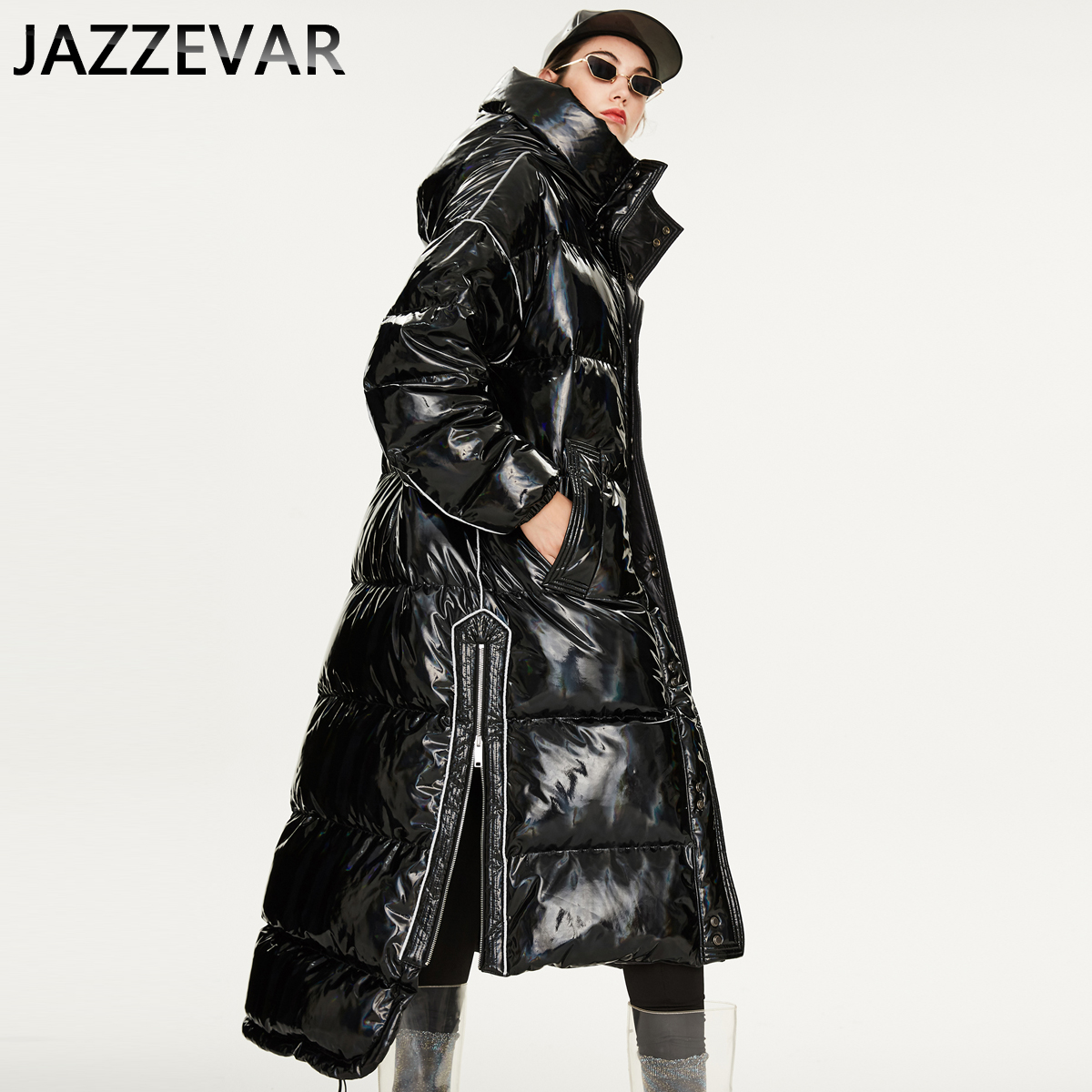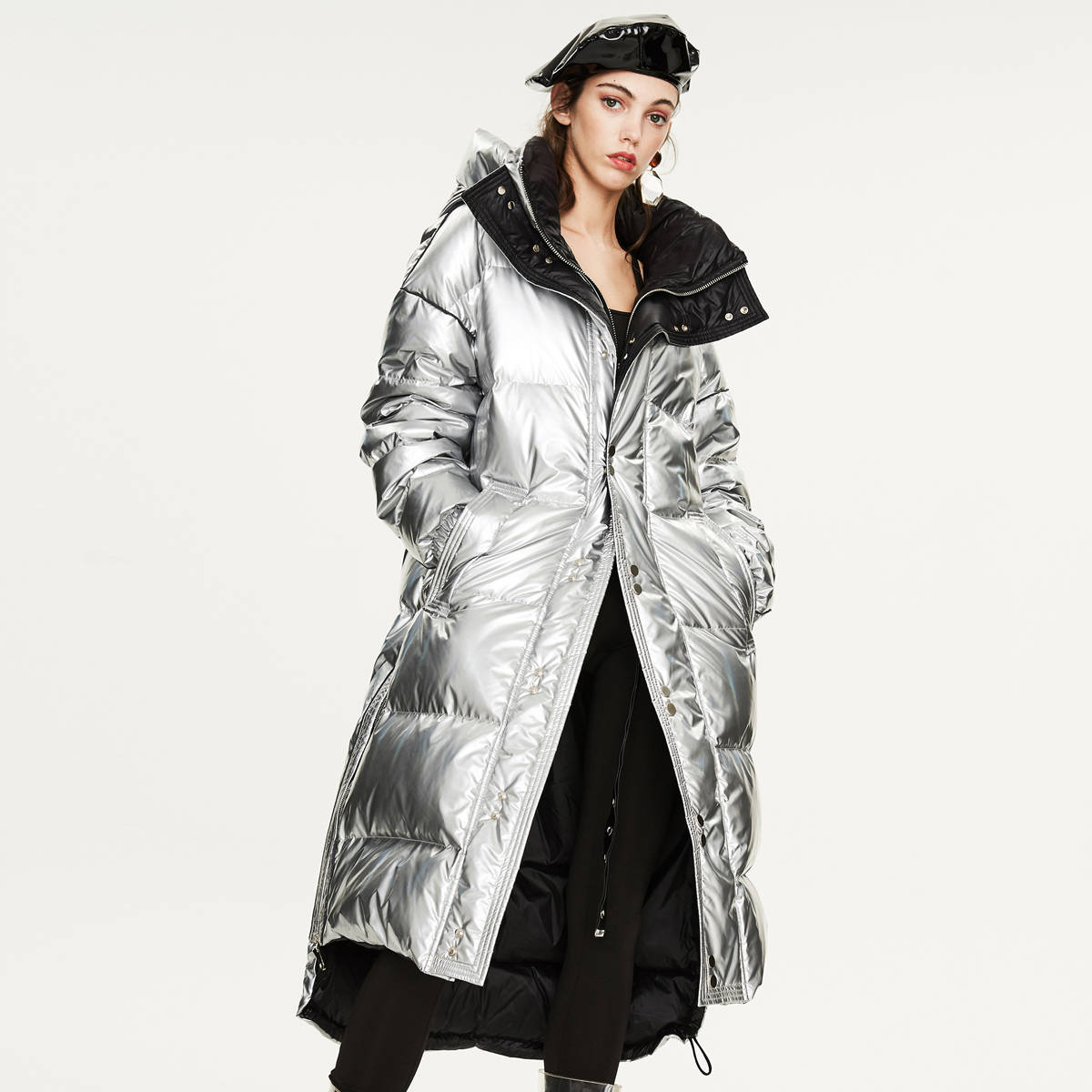 Winter Warm Silver Down Jacket Women's Long Thick Padded Hooded For Flash Winter Jacket Men And Women The Same Style