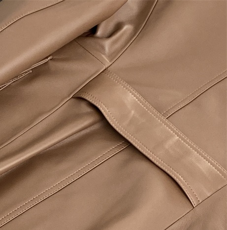 Spring 22 Ladies Real Sheepskin Leather Shirt Long Sleeve Black Bomber Jacket Genuine Leather Jacket With Irregular Pockets