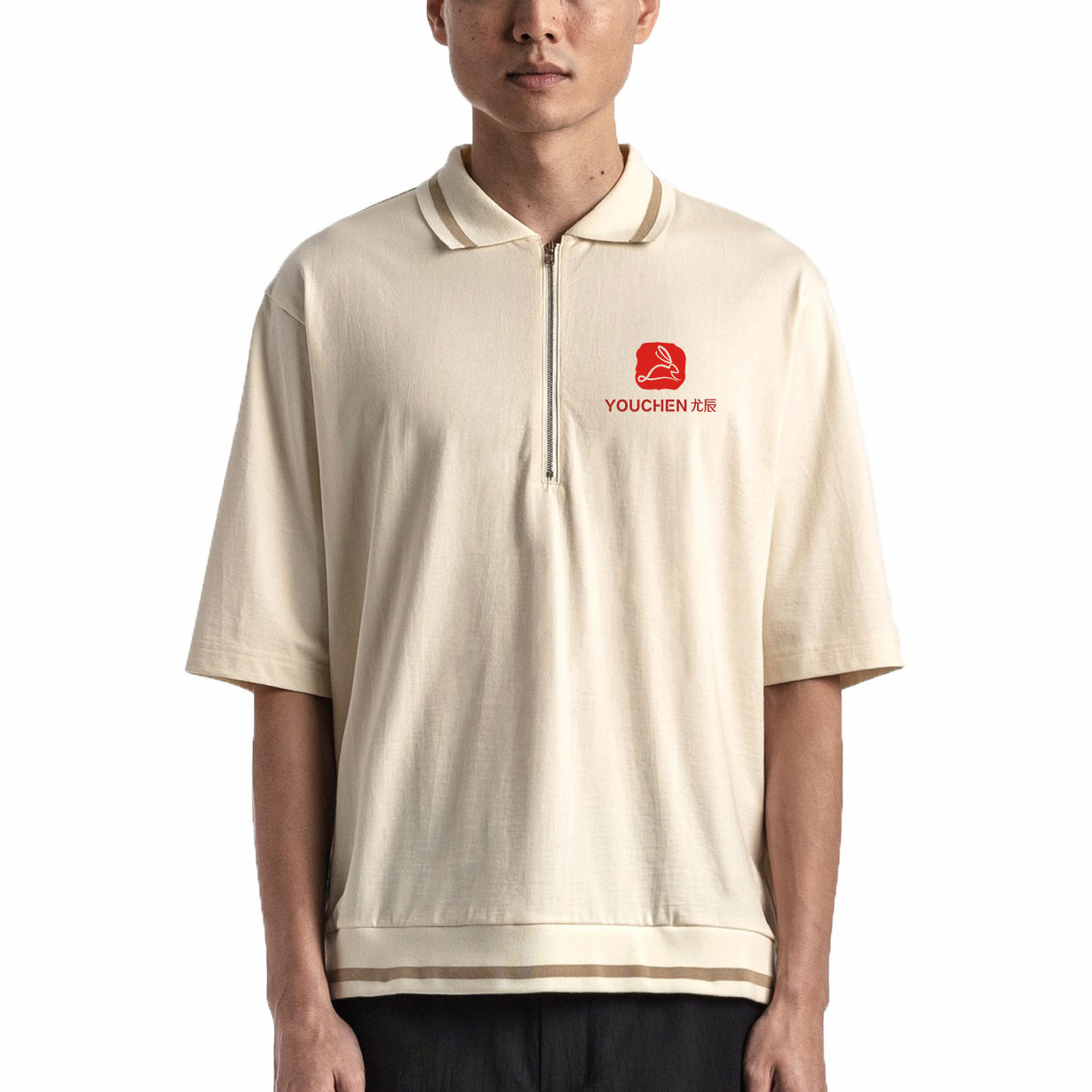 Oem High Quality Streetwear Custom Men's Quarter Zip Polo Shirt Short Sleeve Embroidered Logo Drop Shoulder Golf Polo T-shirt
