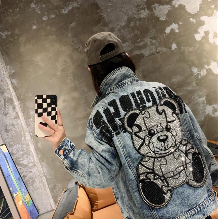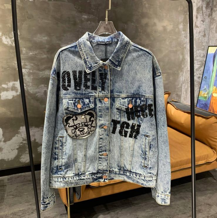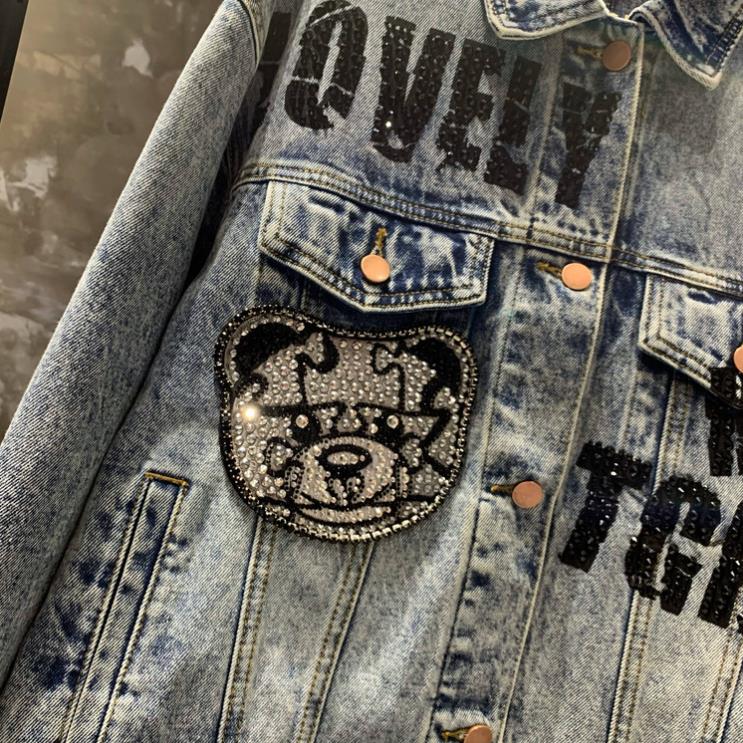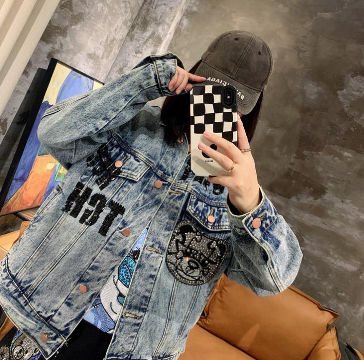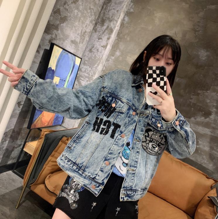 Spring Autumn Jeans Coat Men's and Women's Denim Jacket Washed Rhinestone High Street Style Fashion Handsome Casual Jacket