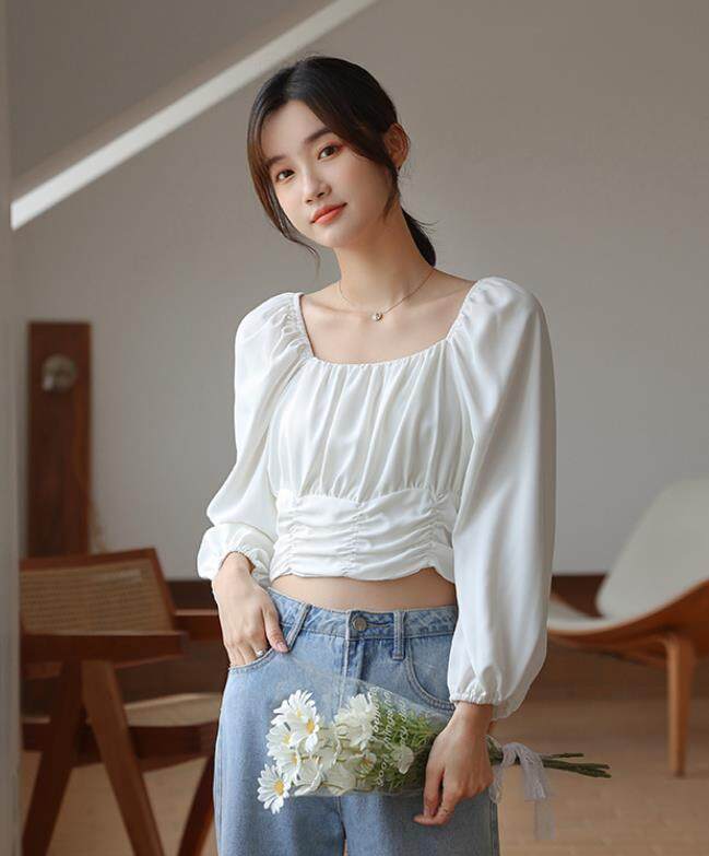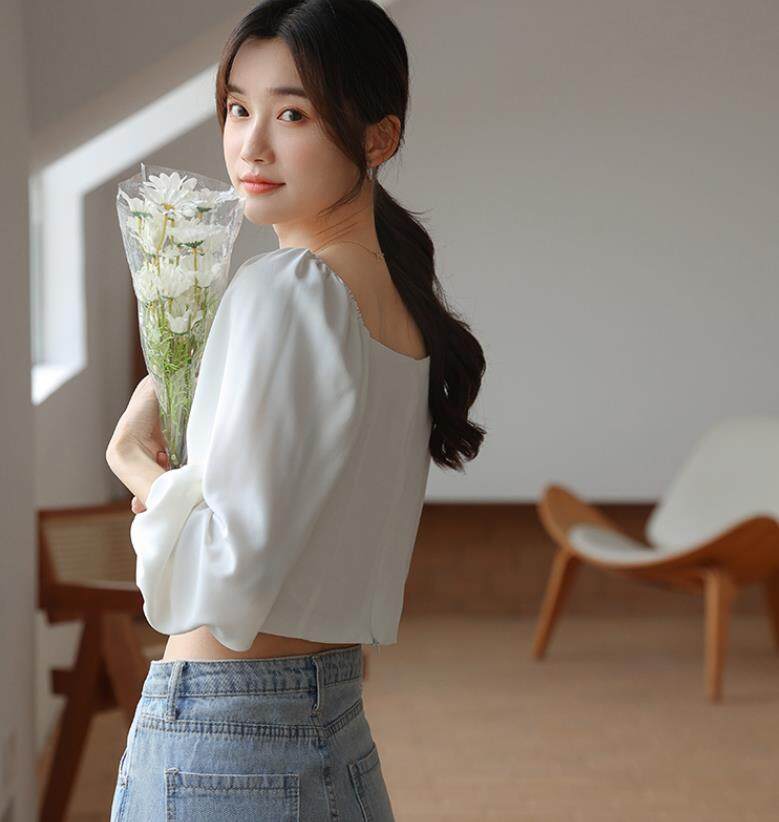 HolidayQueen New long-sleeved clothing for spring lantern solid color slim shirt topWomen's clothing HQT102071