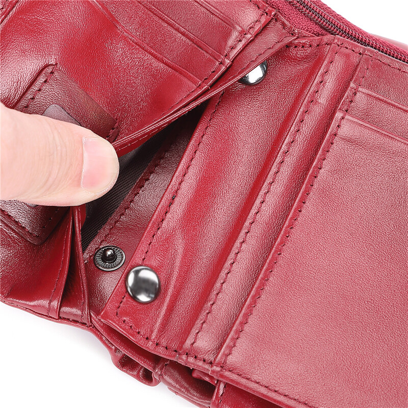 Royal Bagger 2021 New Fashion Short Wallet Purse For Women Genuine Cow Leather Elegant Clutch Bag Multi-Card Position Coin Bag Key Bag