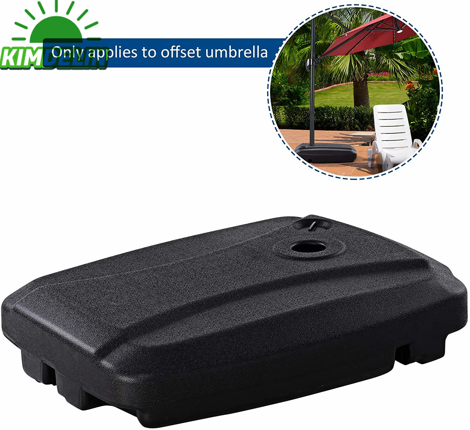 Name: Umbrella BaseMaterial: plasticWeight: 8000gProduct size: L80*W60*H16CM/31.50*23.62*6.30inProvide weight: 60KGInsert hole size: 38mm/1.50in,48mm/1.89inRecommended umbrella size height: 2.7m/,3.0m/,3.3m/Packing: boxPacking List: