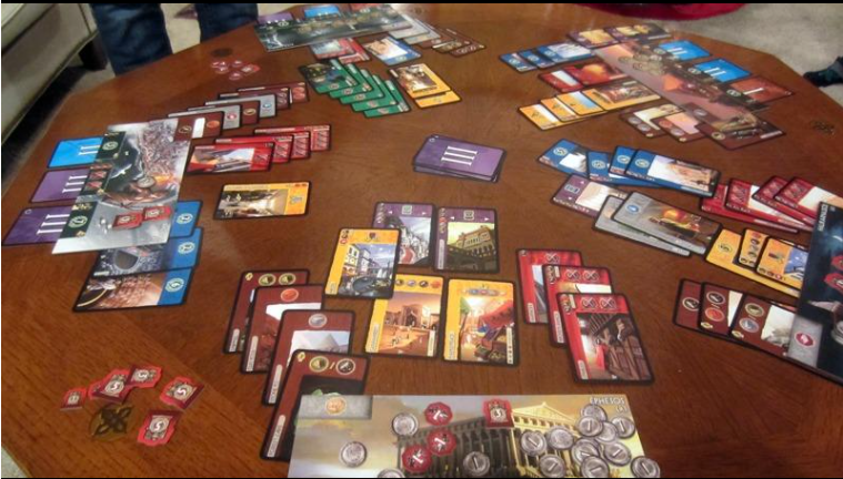 When the third age is over, players score the points given by their cards and their military conflicts. The winner is the player with the most points.