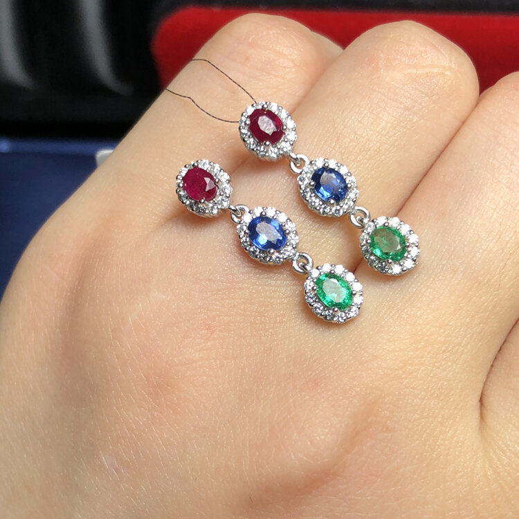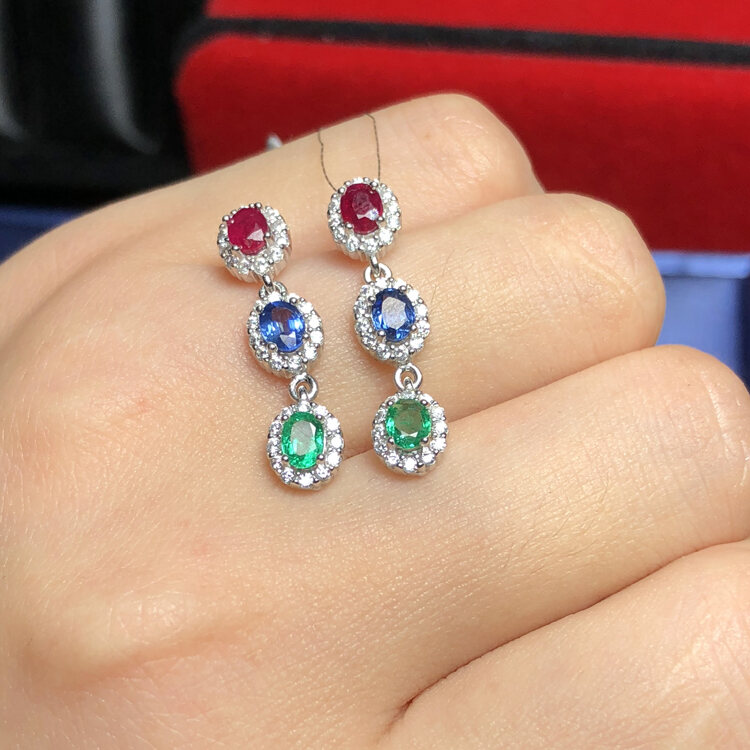 Colored Gems Stone Jewelry 925 Sterling Inlaid Natural Colored Stone Earrings 3*4 Finished Colored Gems Earrings