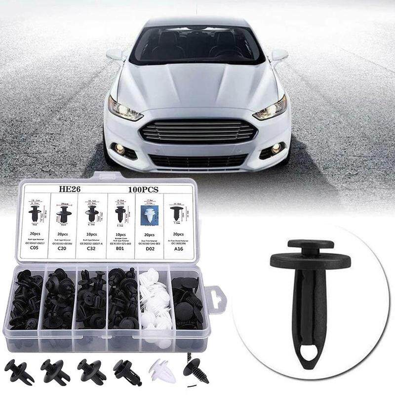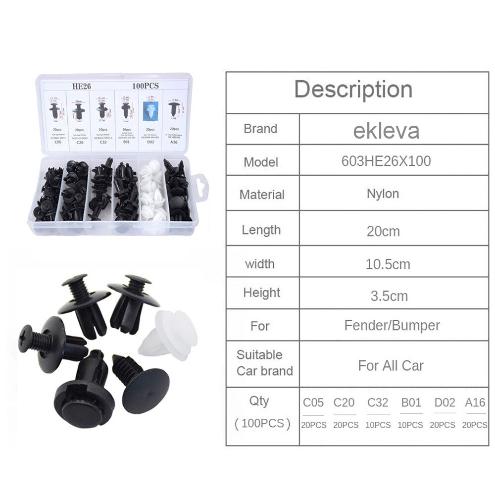 EKLEVA 100PCS Mixed Automobile Universal Plastic Expansion Screw Push Retainer Pin Rivet Bumper Door Trim Panel Retainer Fastener Kit