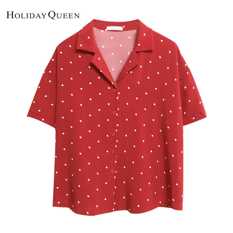 HolidayQueen Summer Dress Korean Version All-match Polka Dot Short-sleeved Shirt Top Women's Slim Suit Collar Single-breasted ShirtWomen's clothing HQP0899