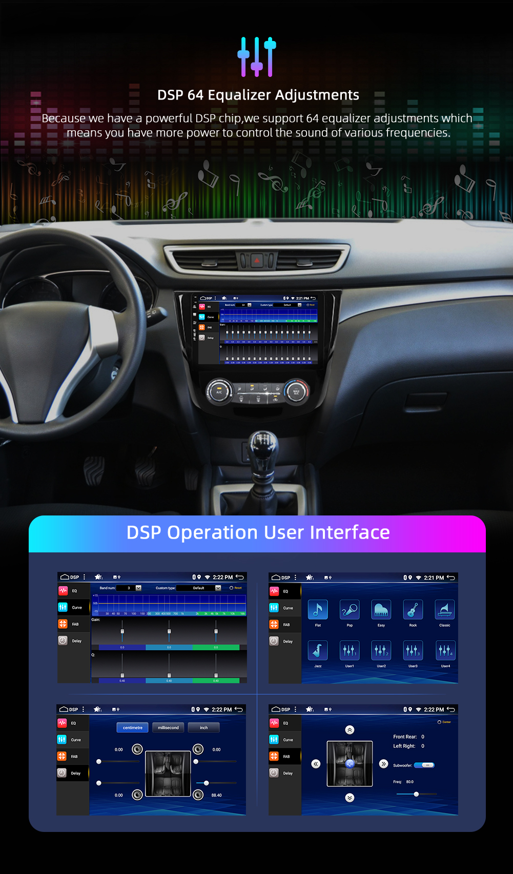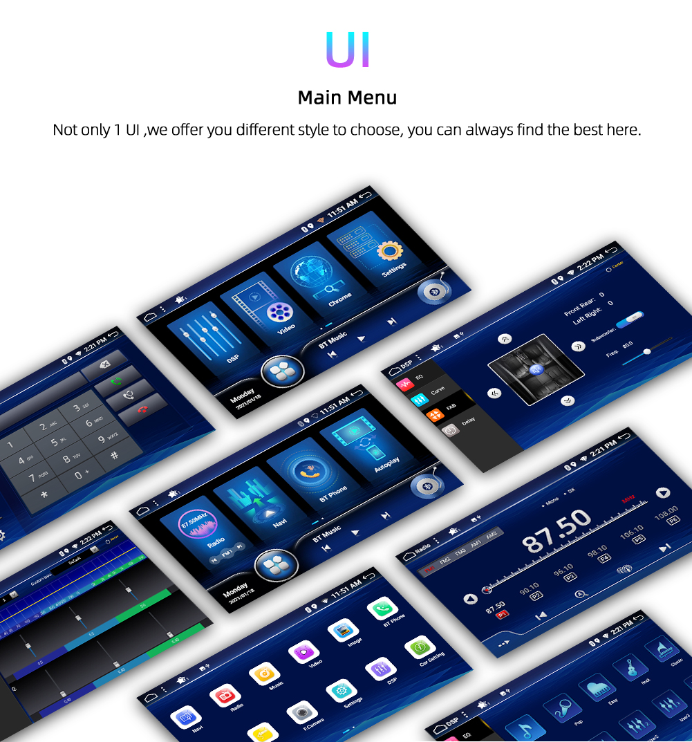DSP+Carplay+Touch Screen+Radio+FM/AM+RDS+GPS Navigation+MAP+Wifi+Bluetooth+Steering Wheel Control +Split Screen + USB+SD+AUX in/Out+Mirror Link+Rear View Camera+Subwoofer+Play Sore+EQ+Wallpaper Set+Car Logo+3G/4G+TPMS+DAB+OBD 2+DVR+TV