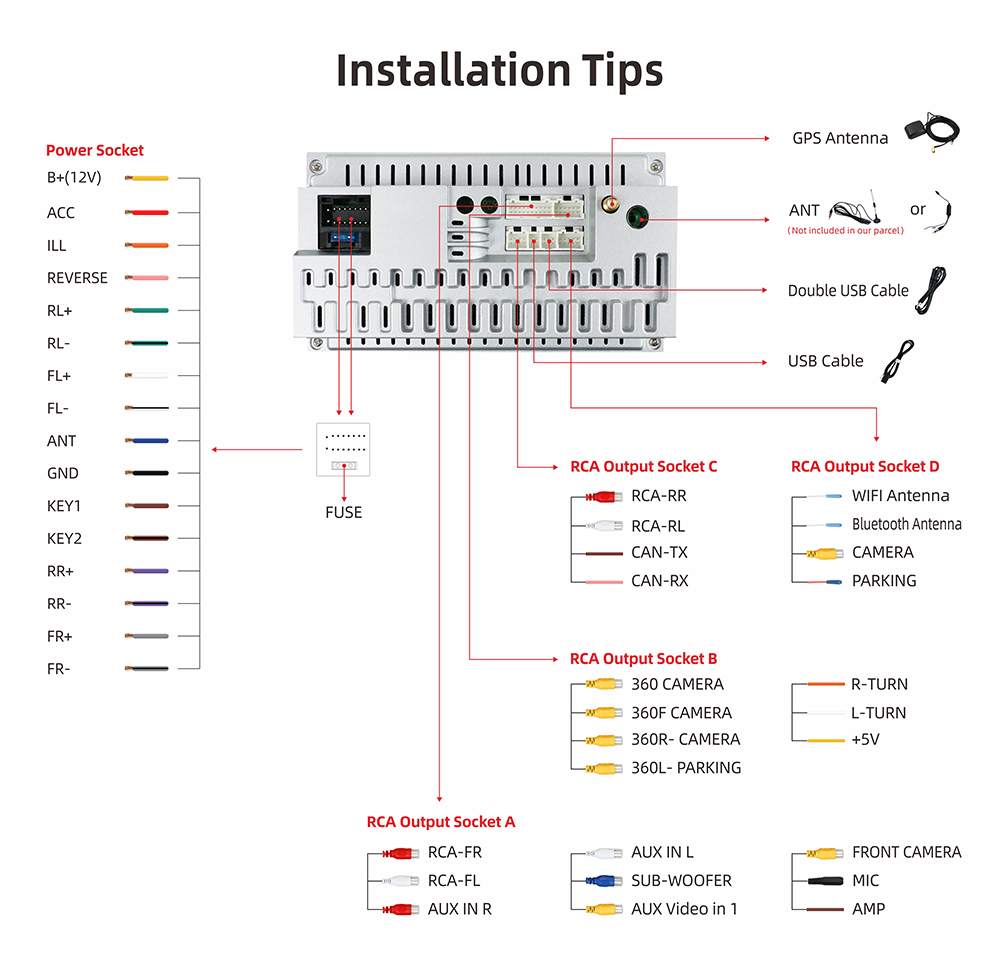 15:RCA cables for the subwoofer, power cable plug, and play, easy to install