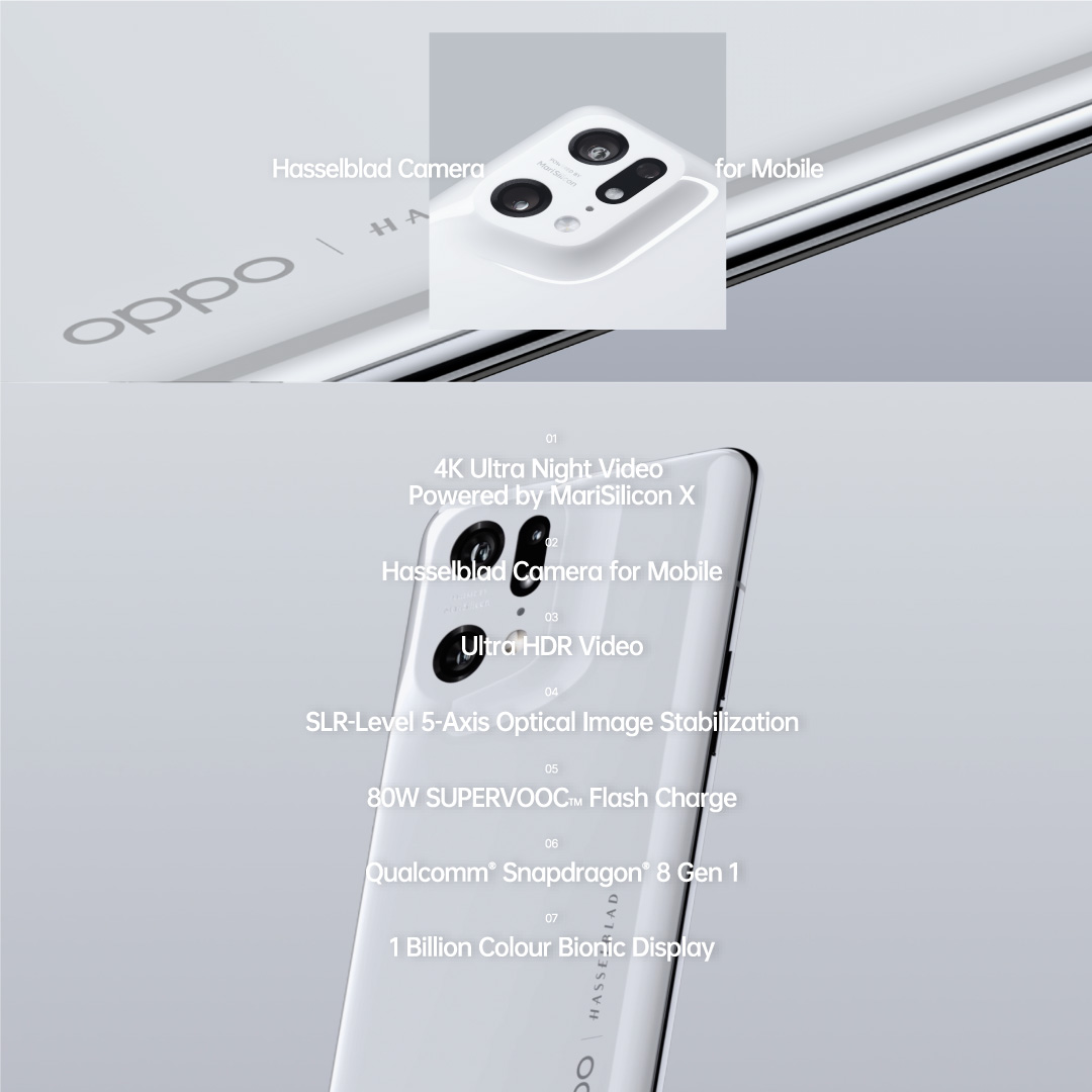 OPPO Find X5 Pro 5G / ColorOS 13 / MariSilicon X Imaging Neural Core / 4K Ultra Night Video / Ultra Clear Snapshot / 80W SuperVOOC