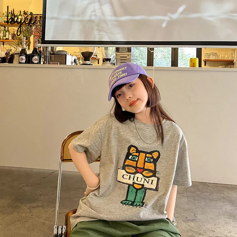 KYII Girls short sleeved T-shirt Summer children cartoon loose Top ky22083