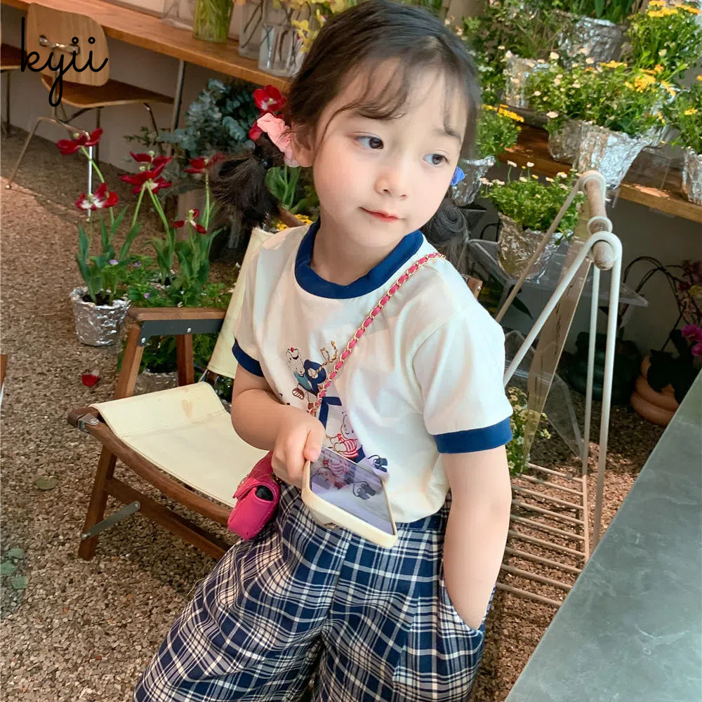 KYII Girl Summer children Korean Round-neck shirt Versatile short sleeve Top kyii0039