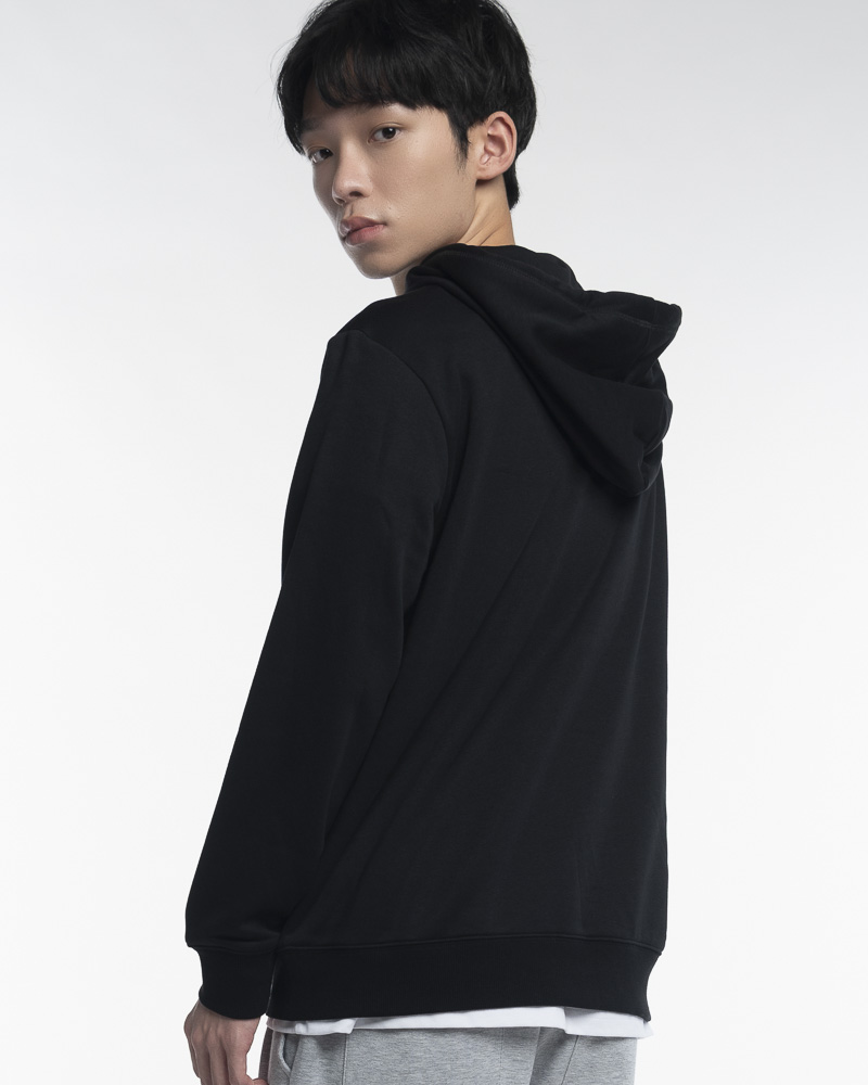 Regular Solid Coloured Long Sleeve Pullover Hoodie with Kangaroo Pockets at the front. Comes with NOVEMBER Slogan Patch at the front. Made of cotton.