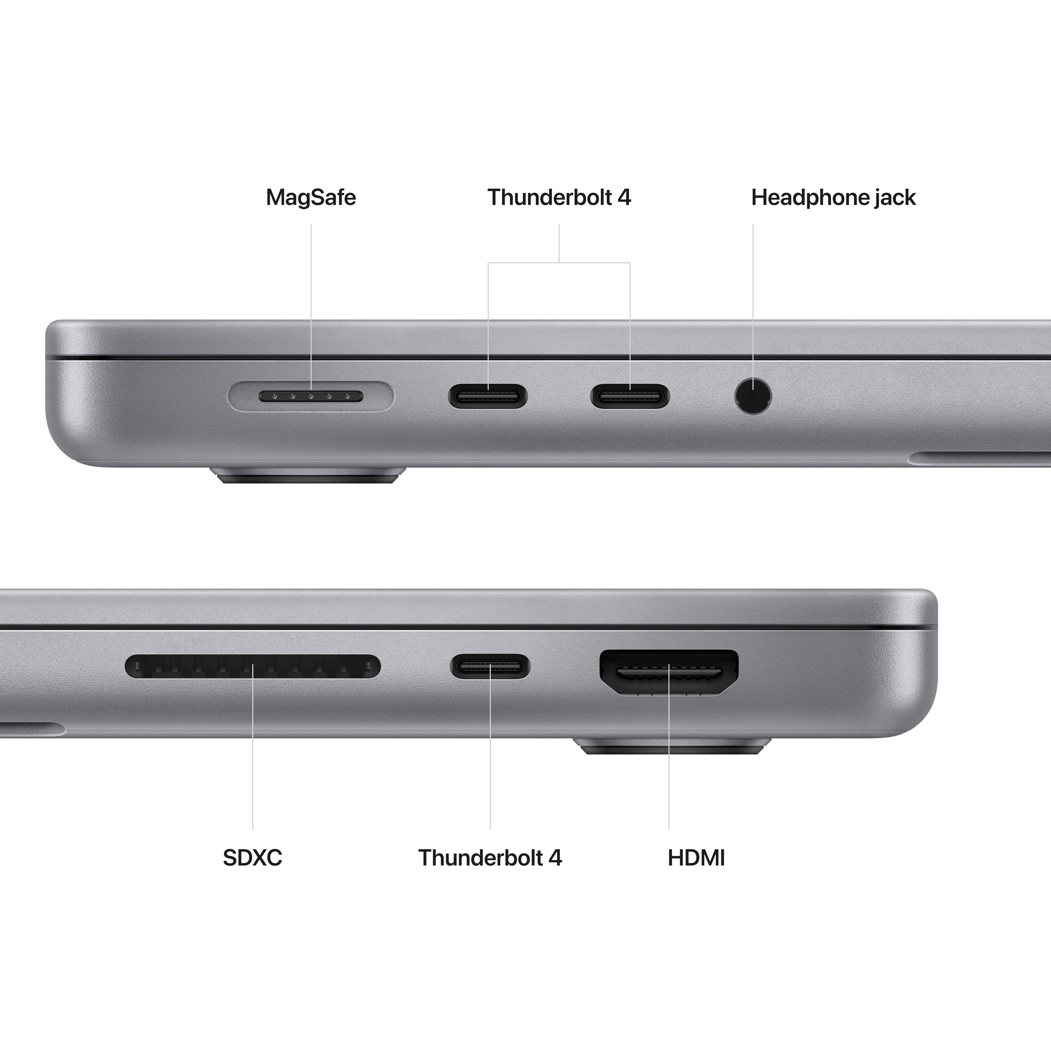 Apple 14-inch MacBook Pro: Apple M1 Pro chip with 8‑core CPU and 14‑core GPU, 512GB SSD