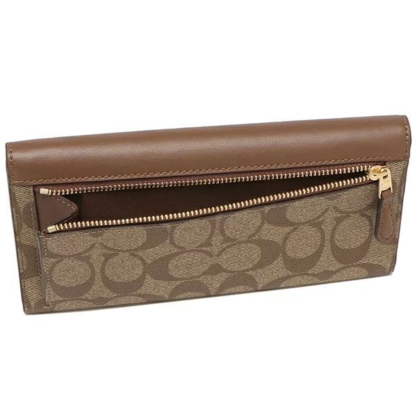 Coach Wallet In Gift Box Long Wallet Signature Slim Trifold Wallet Khaki Saddle Brown # C5966