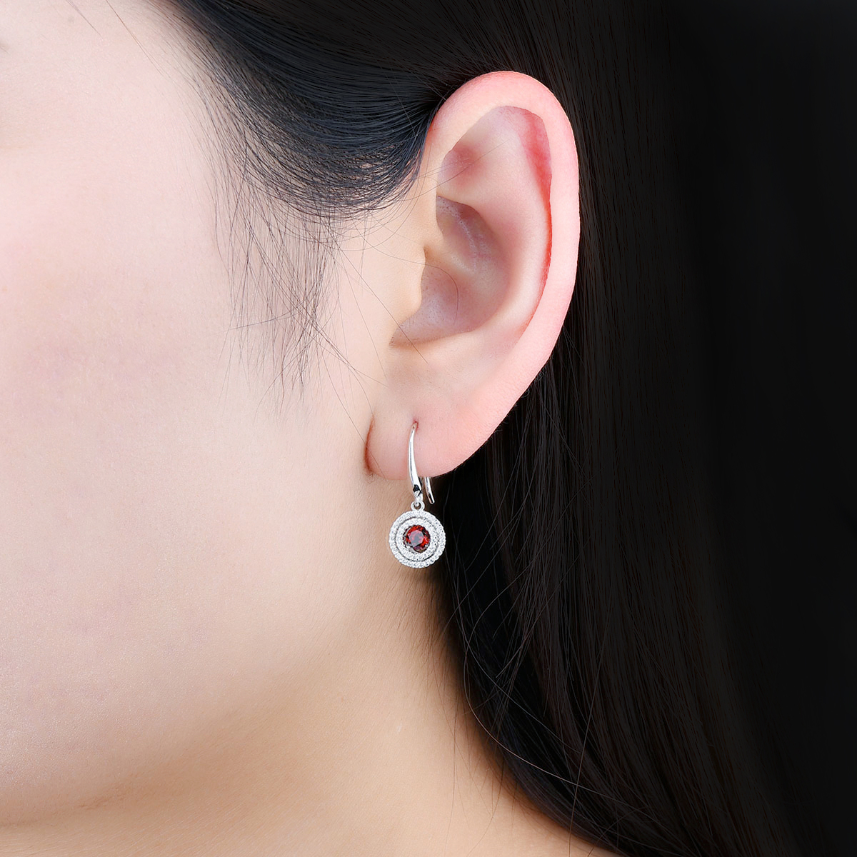 Original Sterling Silver 925 Drop Earring Natural Red Garnet Gemstone Elegant Style Women Jewelry Birthday Gift