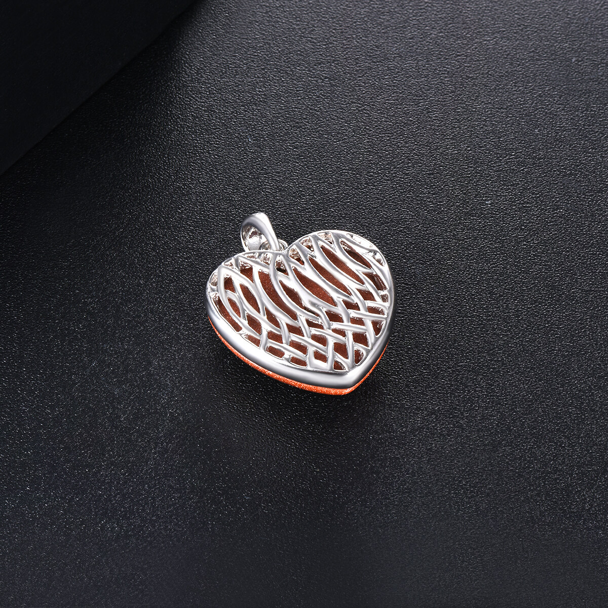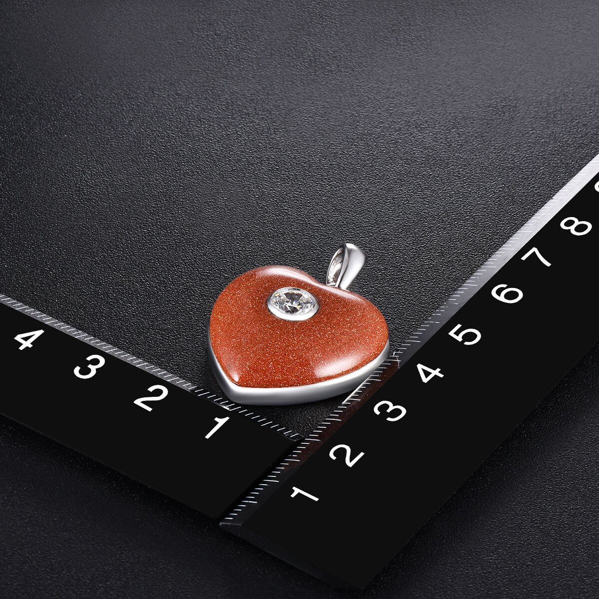 Heart Shape Gold Sand Stone Pendant Natural Gemstone for Women's Gift Real 925 Sterling Silver