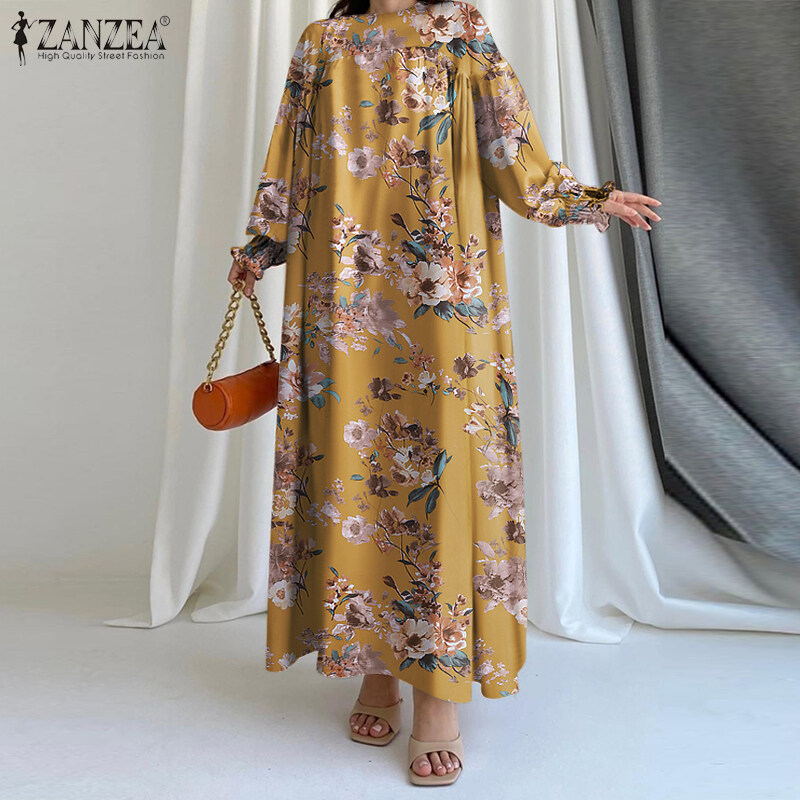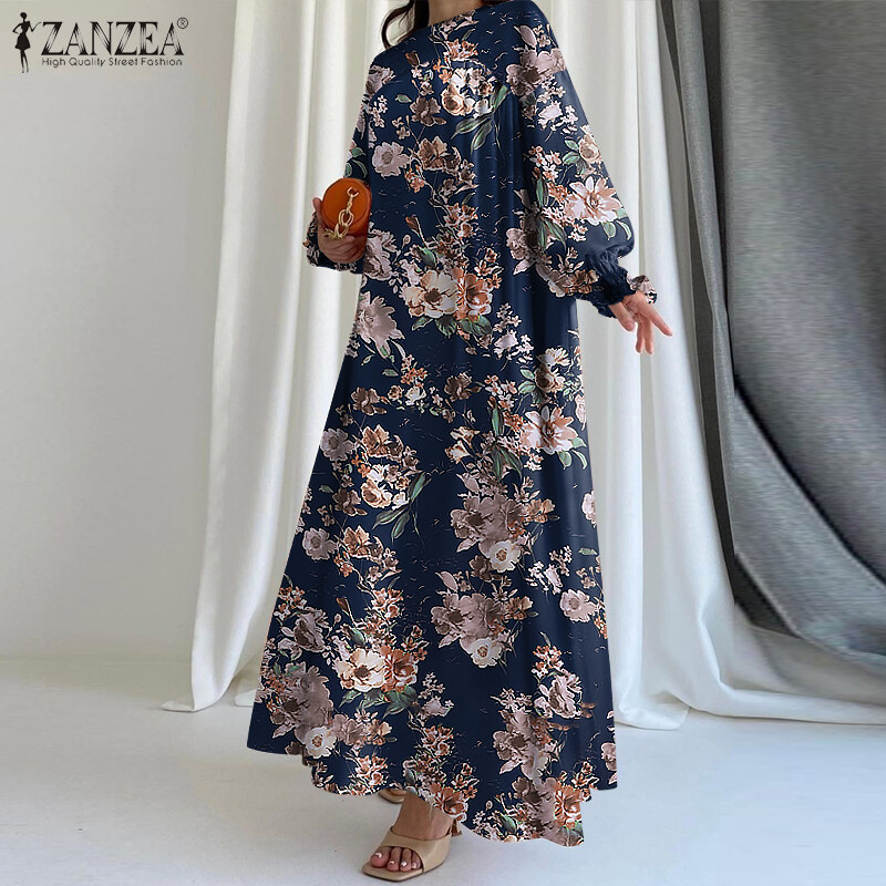 ZANZEA Women Bohemian Floral Printed A-Line Sundress Holiday Beach Long Sleeve Maxi Dress #15