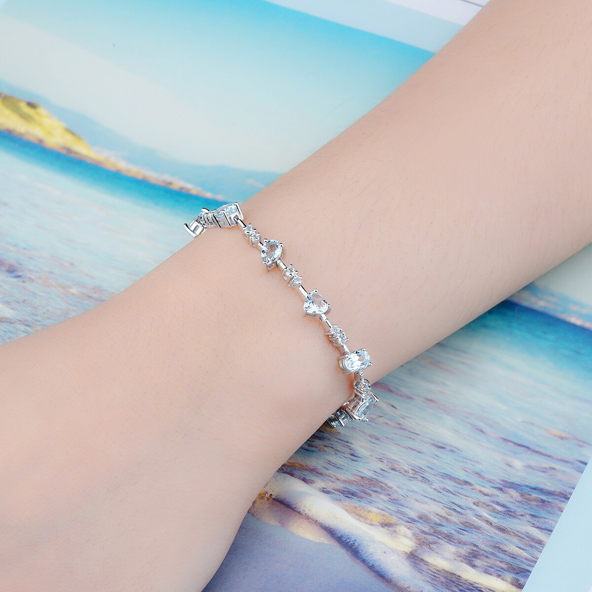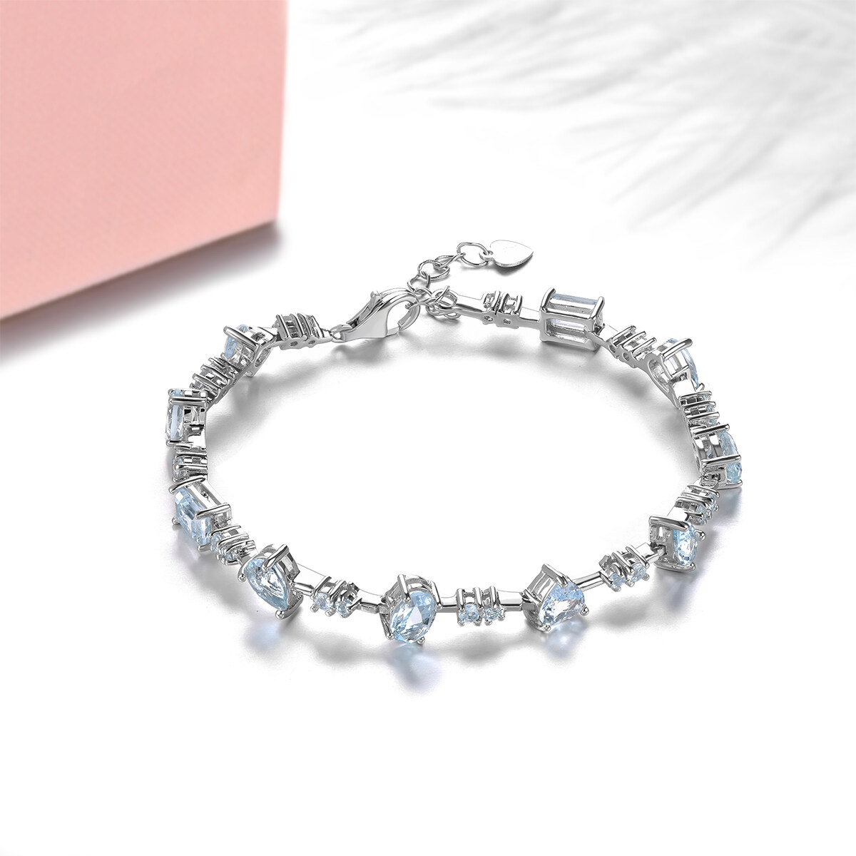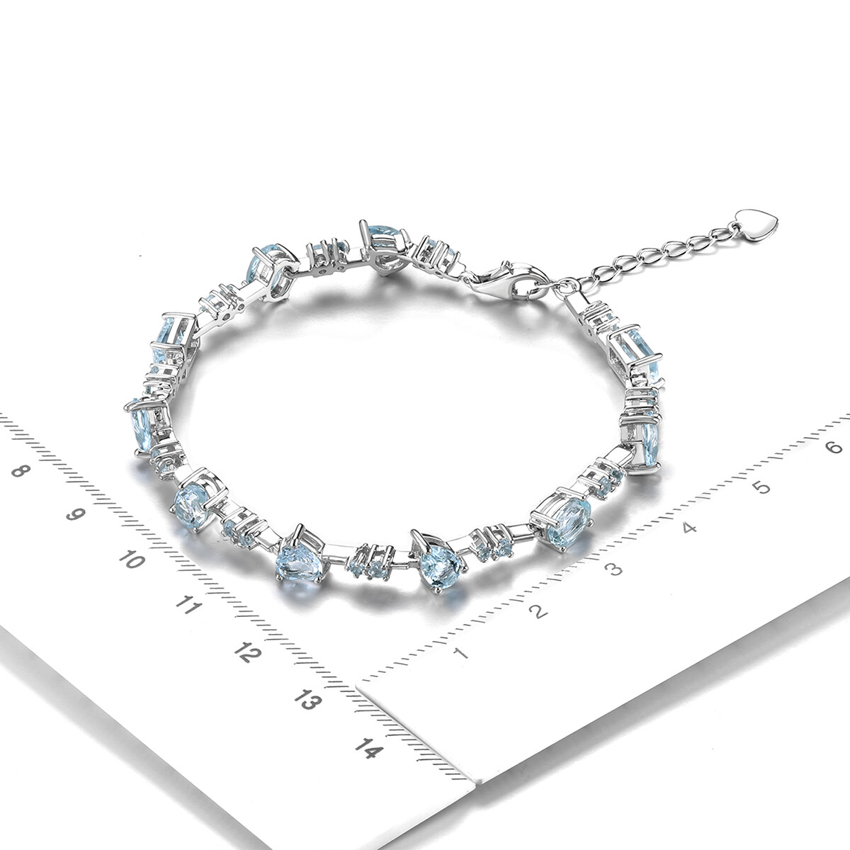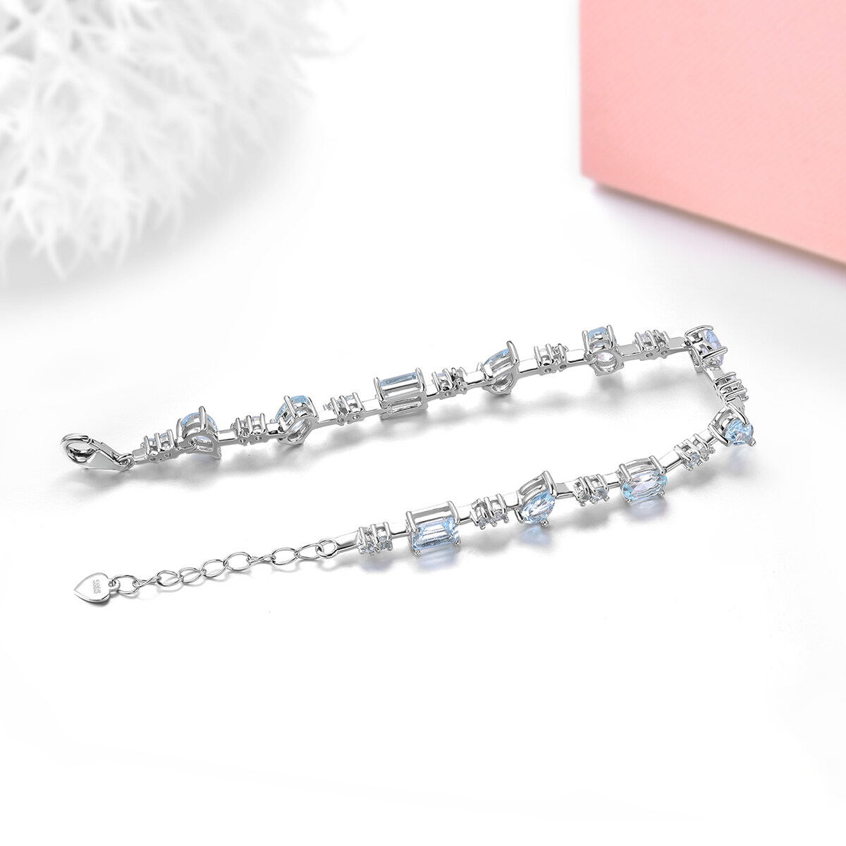 Lohaspie Jewelry Genuine 4.5 Carats Sterling Silver 925 Original Natural Aquamarine Bracelet Light Blue Gemstone Aquamarine Bracelet For Women Birthstone Jewelry