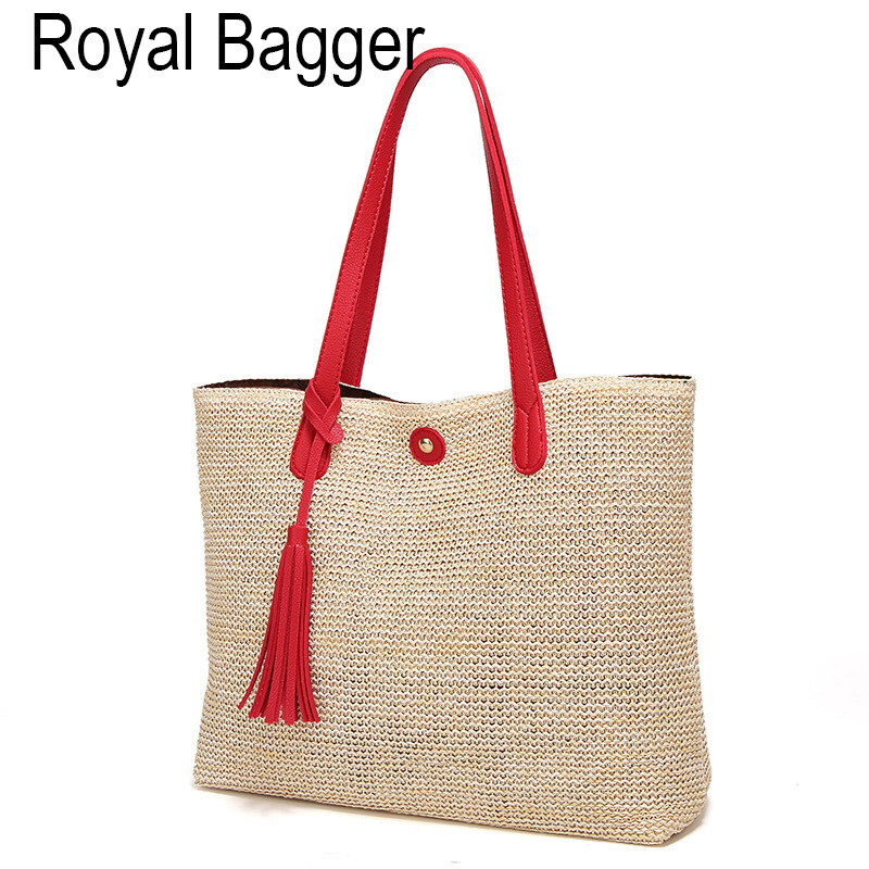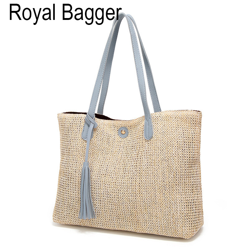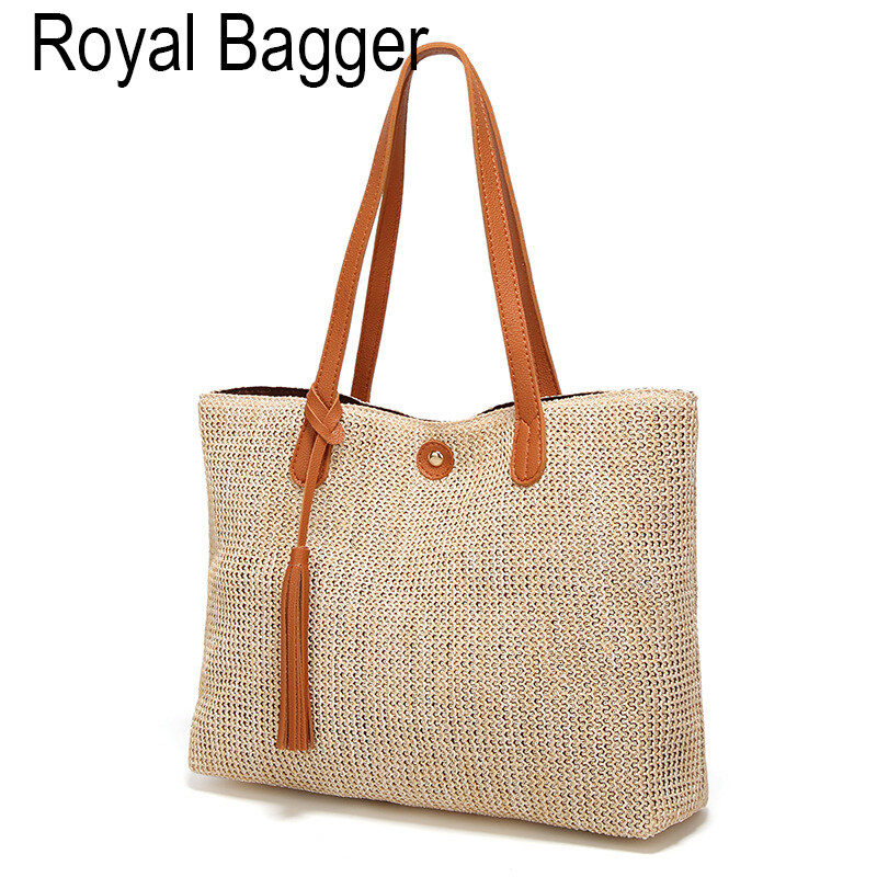 Royal Bagger Tote Bag European And American Fashion Big Bag Woven Handbags Elegant Beach Straw Bags Casual Simple Shoulder