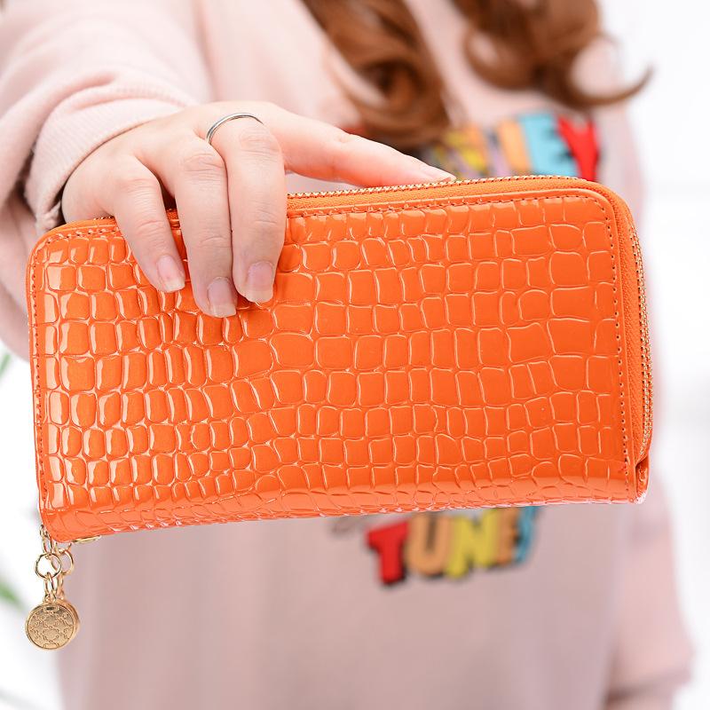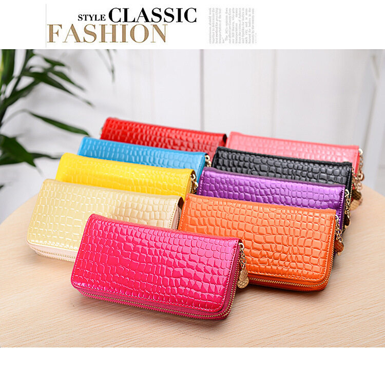 High quality PU leather Wallet Korean Style Double Zipper Ladies Large Capacity Long Patent Mobile Phone Clutch Wallets Purse For Women Girls