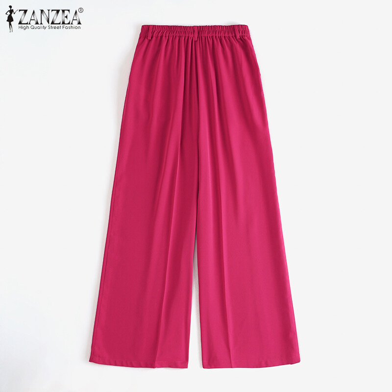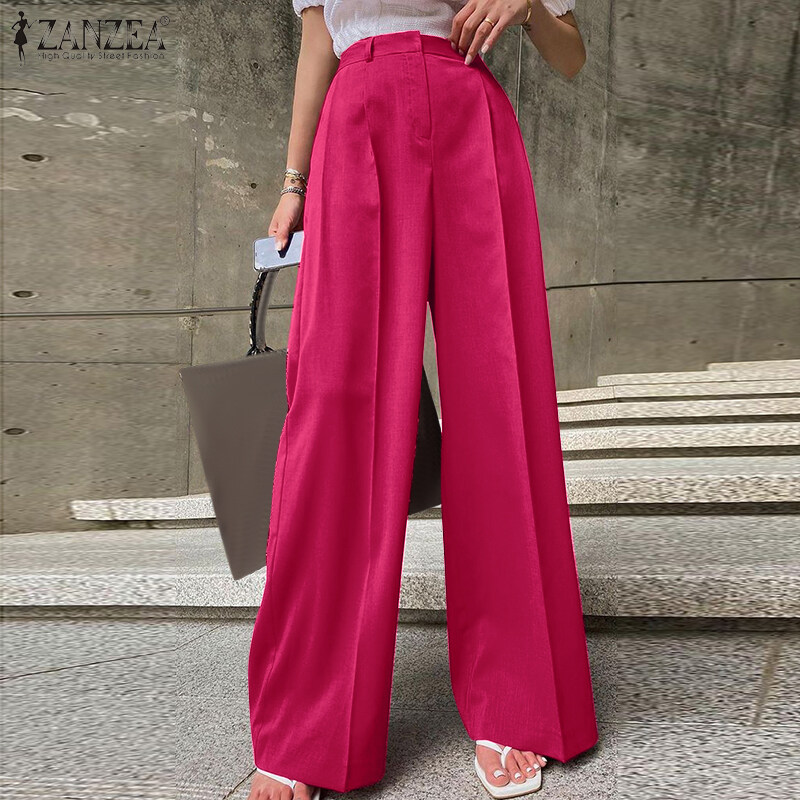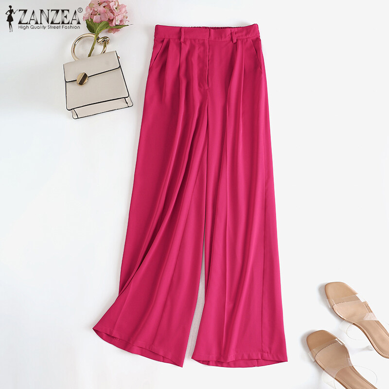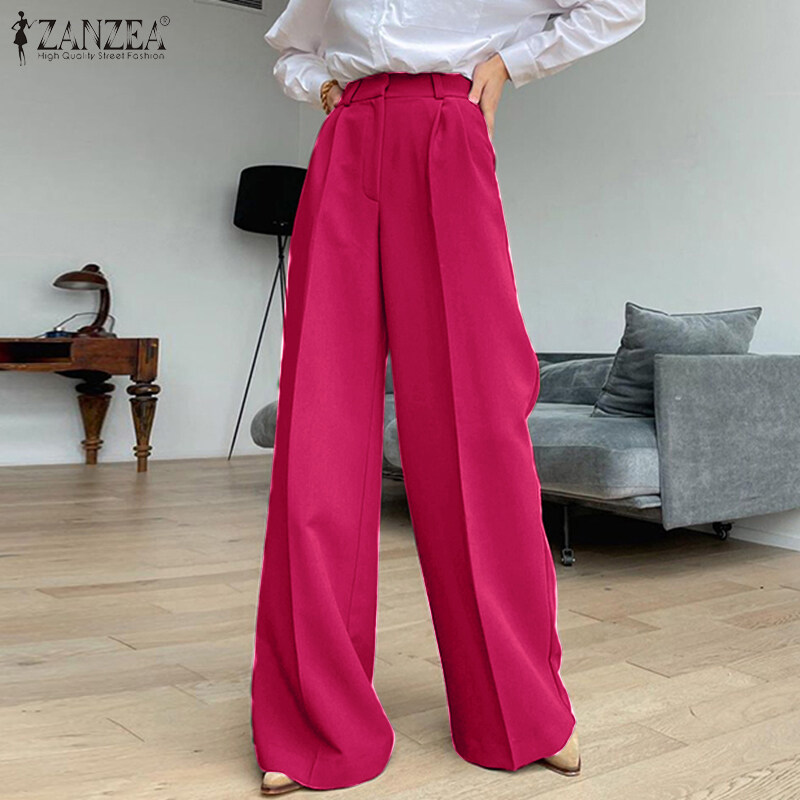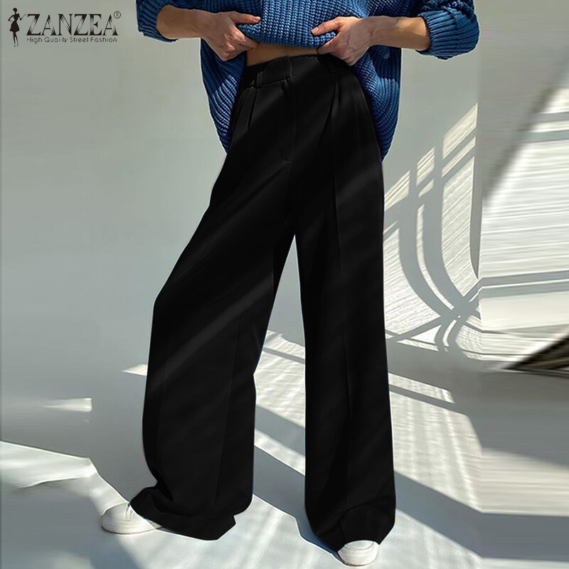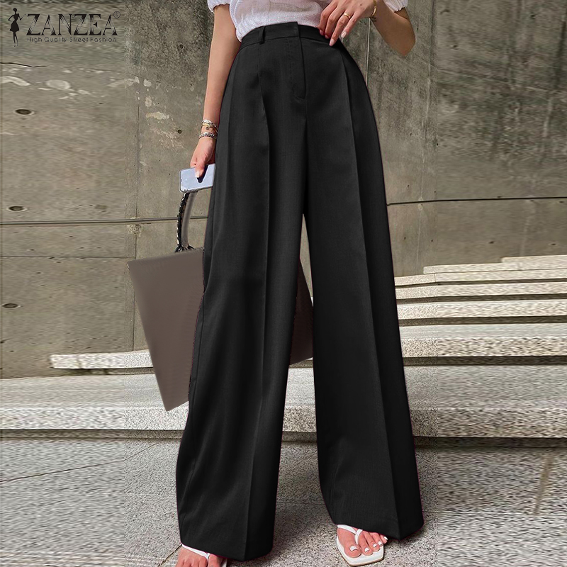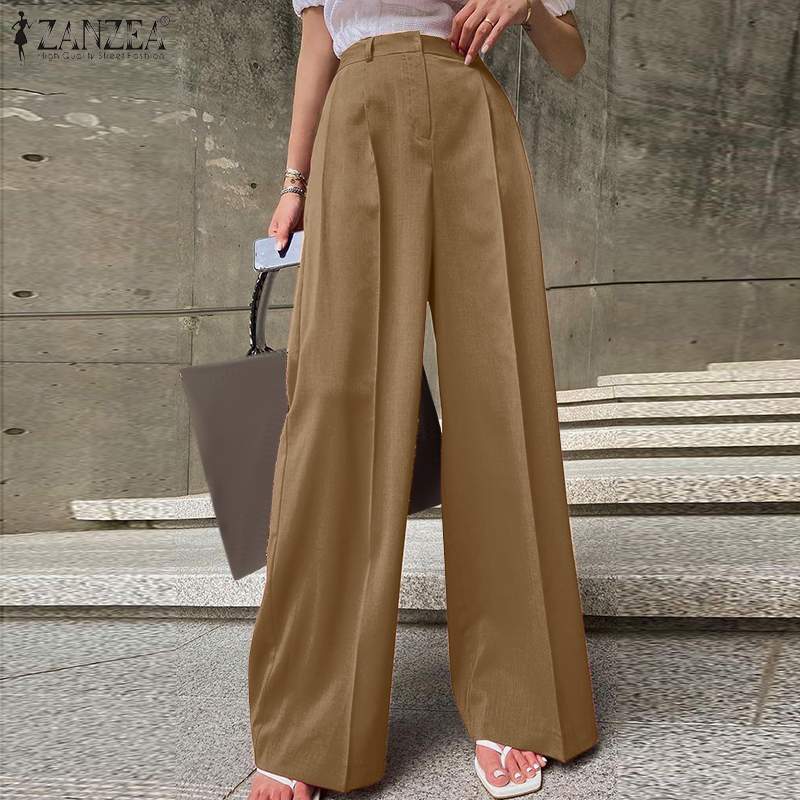 ZANZEA Womens High Waist Zipper OL Business Trousers Wide Leg Loose Casual Pants #15