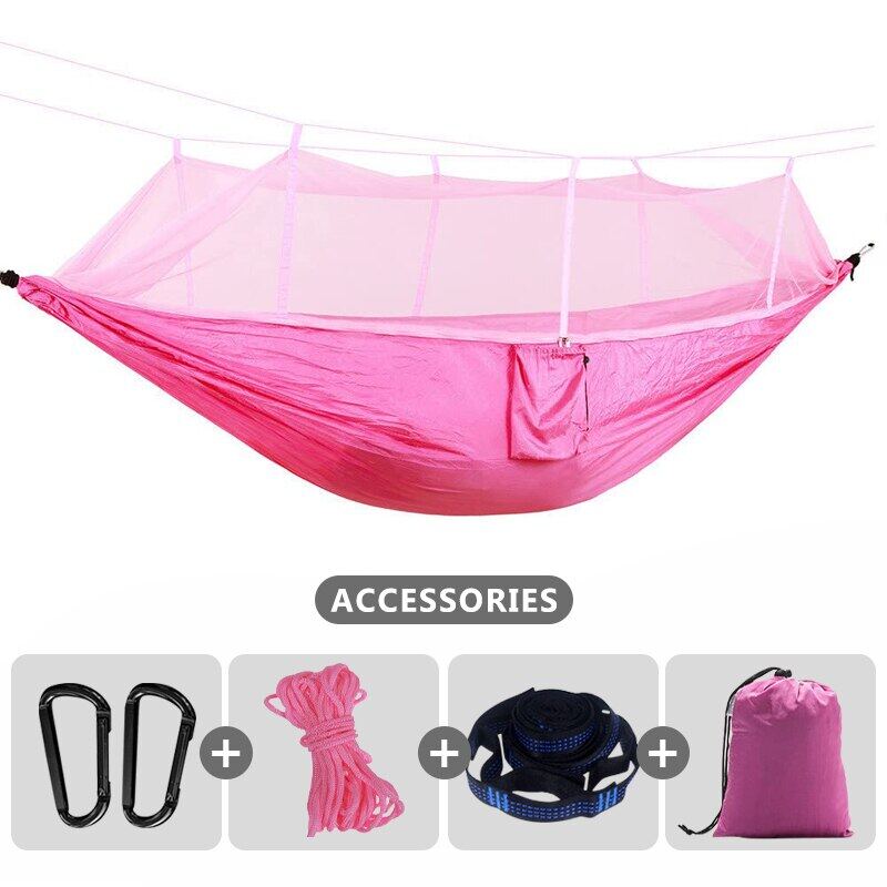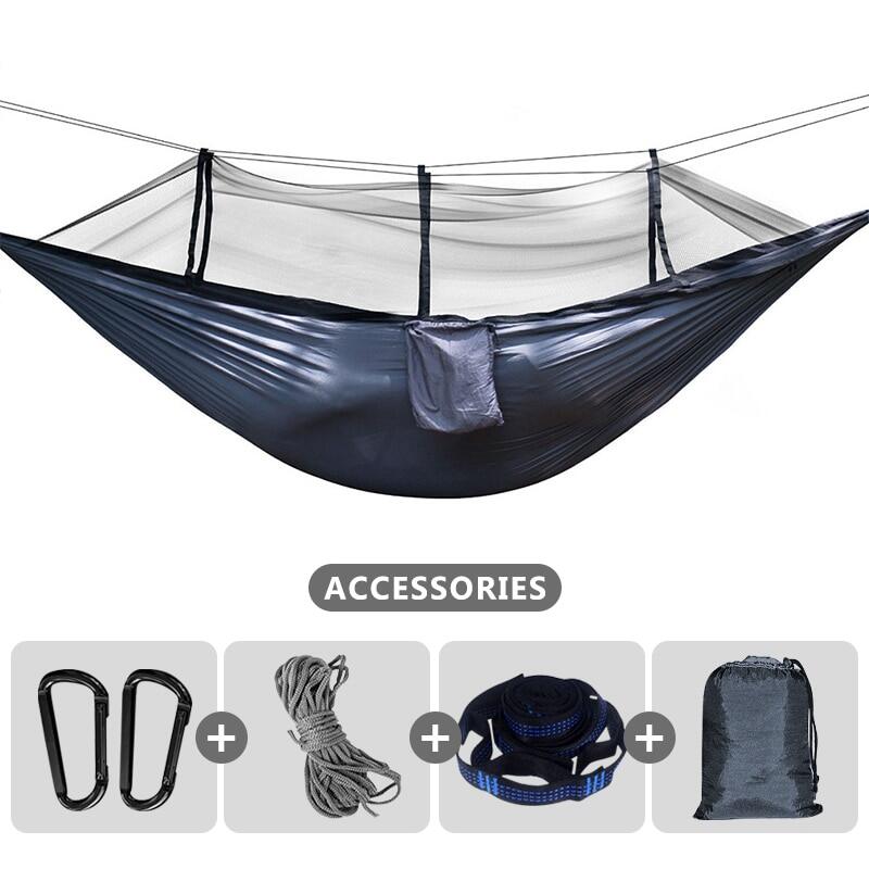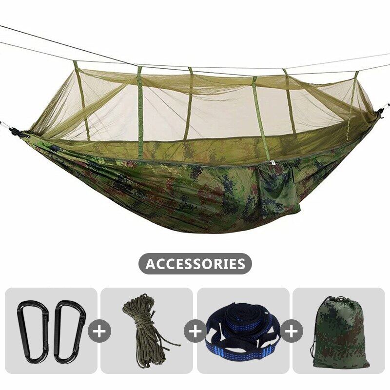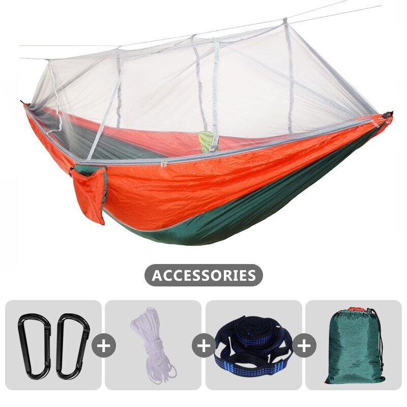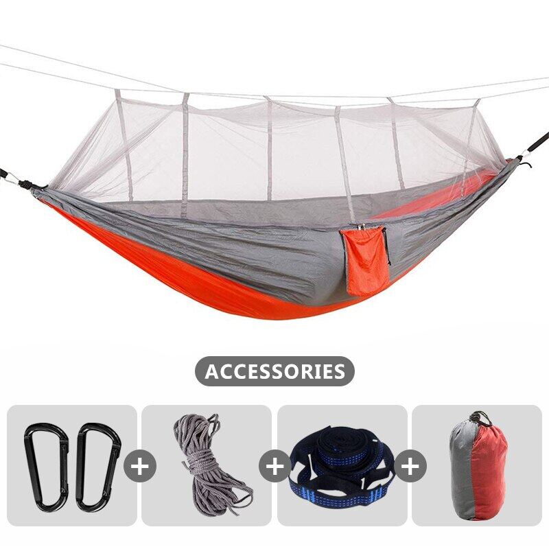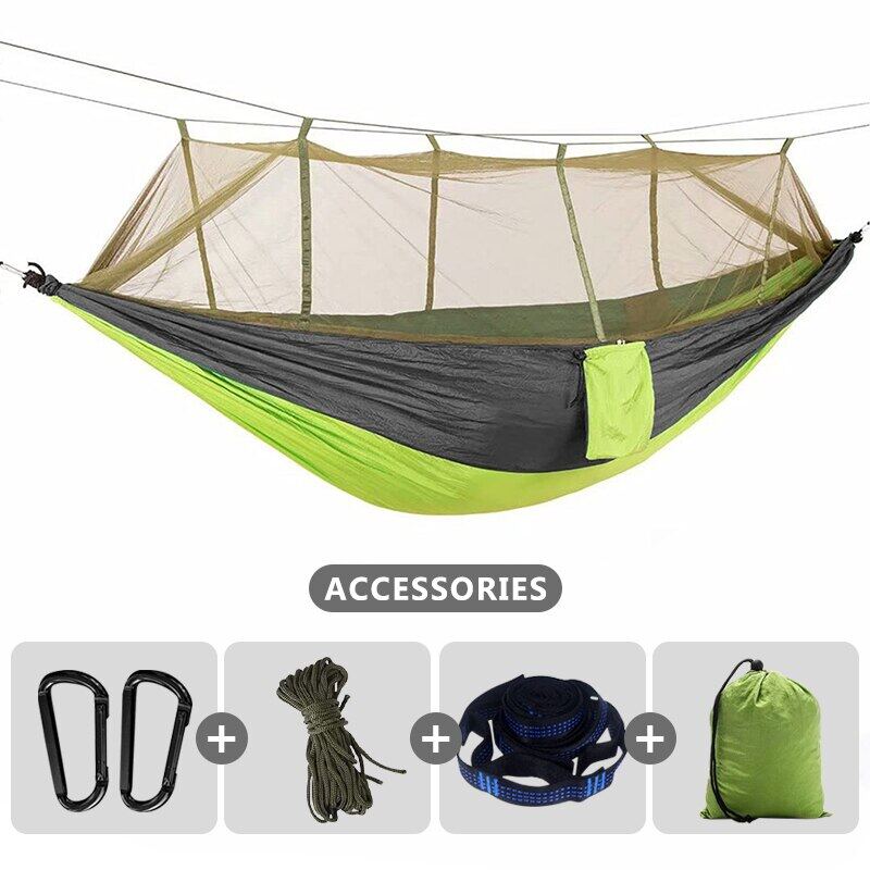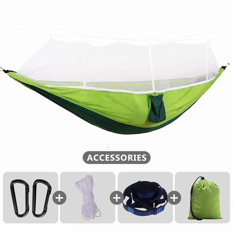 Camping Hammock with Mosquito Net - 2 Person Portable Nylon Hammock Tent for Indoor Backpacking Hiking Travel, with 2 Pcs 6.56 Ft Tree Straps 5+1 loops and 2 Pcs Carabiners Gear