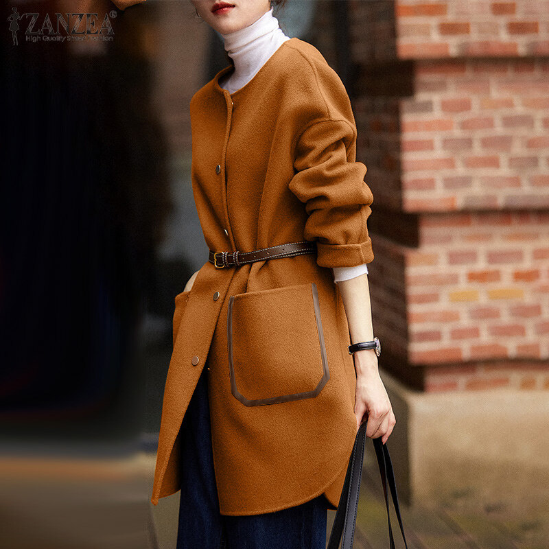 [Clearance Sale]ZANZEA Korean Style Womens Winter Overcoat Long Sleeve Baggy Coats Tunics Overcoat Plus Size #10 CLE