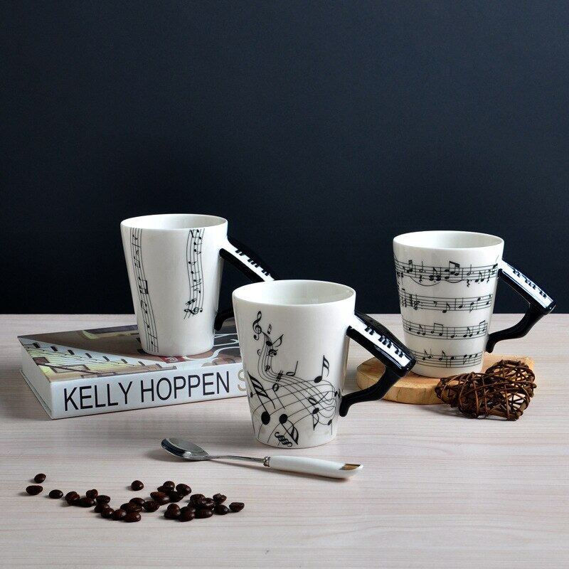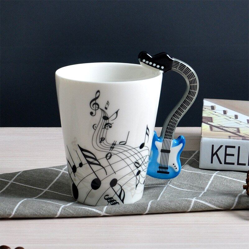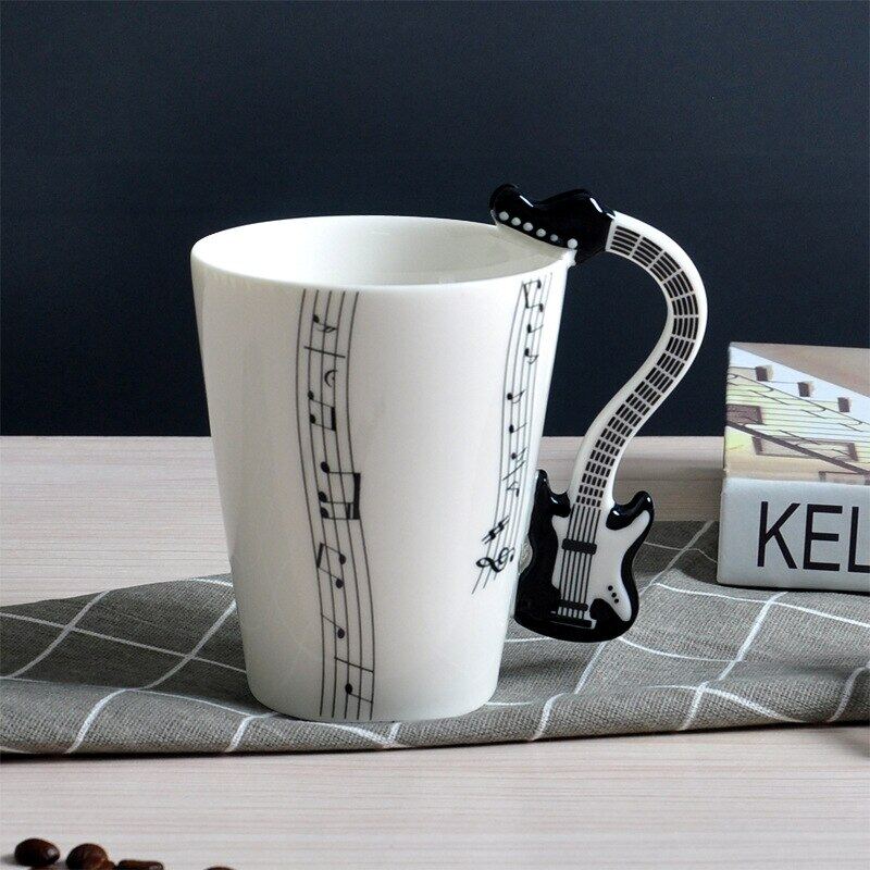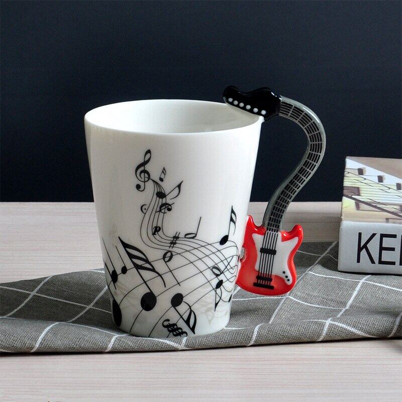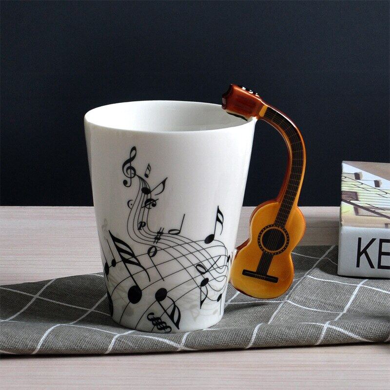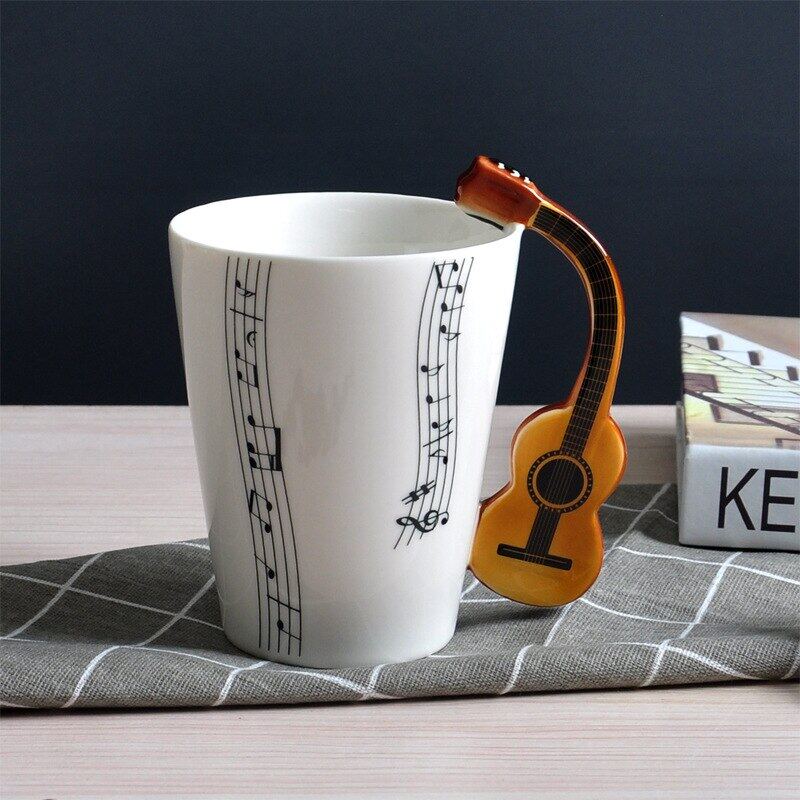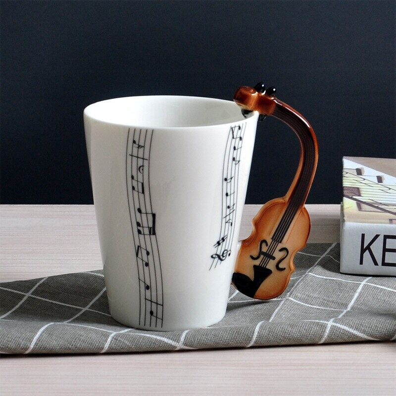 400Ml Music Mug Creative Guitar Violin Style Ceramic Mug Cafe Coffee Tea Milk Water Stave Cups With Handle Novelty Gifts Hot