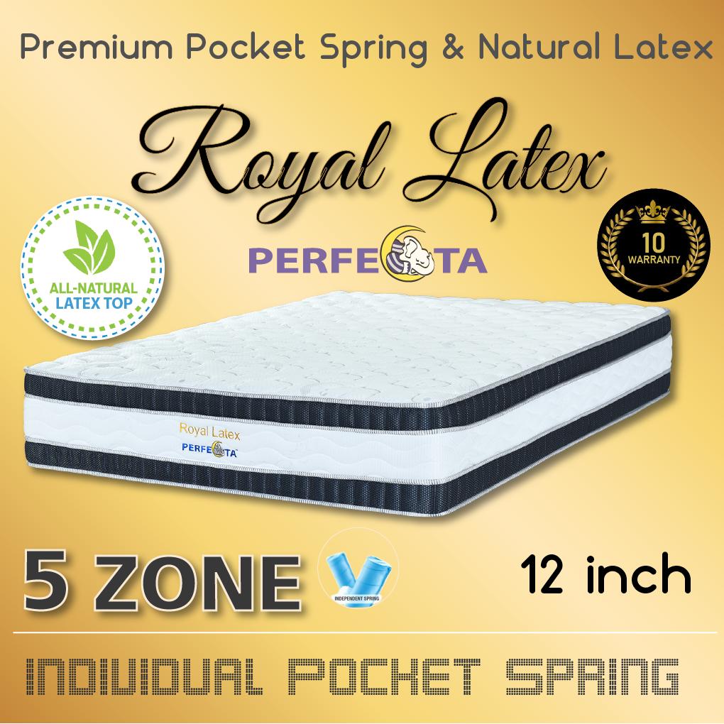 [Bulky] King Size - Perfecta Royal Latex 5 Zone Pocket Spring with Natural Latex Top on Euro TOP Design 12 Inch Mattress