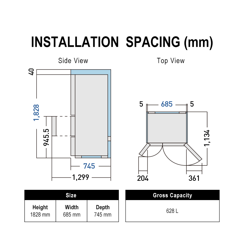 Flat glass doors provide an esthetically pleasing appearance. Electrostatic touch control panel is displayed only when touched, and when not used, its simple seamless glass appearance blends beautifully with modern interiors.