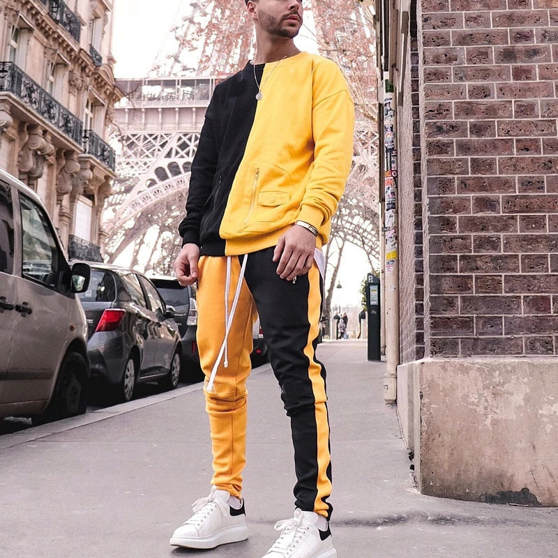 | Item | Wholesale Men street wear Tracksuit contrast color Sweatshirt Jogging Sweatsuit 2pcs set |