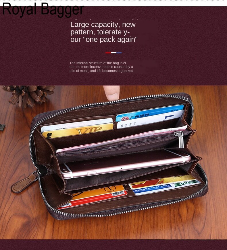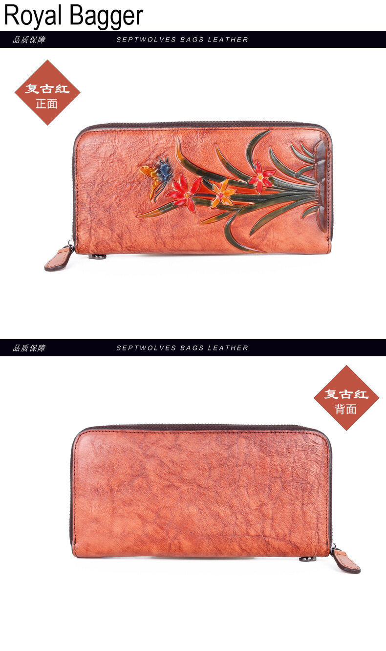 Royal Bagger Genuine Cow Leather New Fashion Women Girls Long Wallet Purse Super Hot High Capacity Retro Flower Clutch Bag Handbag Women's Multifunction Bags Casual Multi-Card Position Wallets