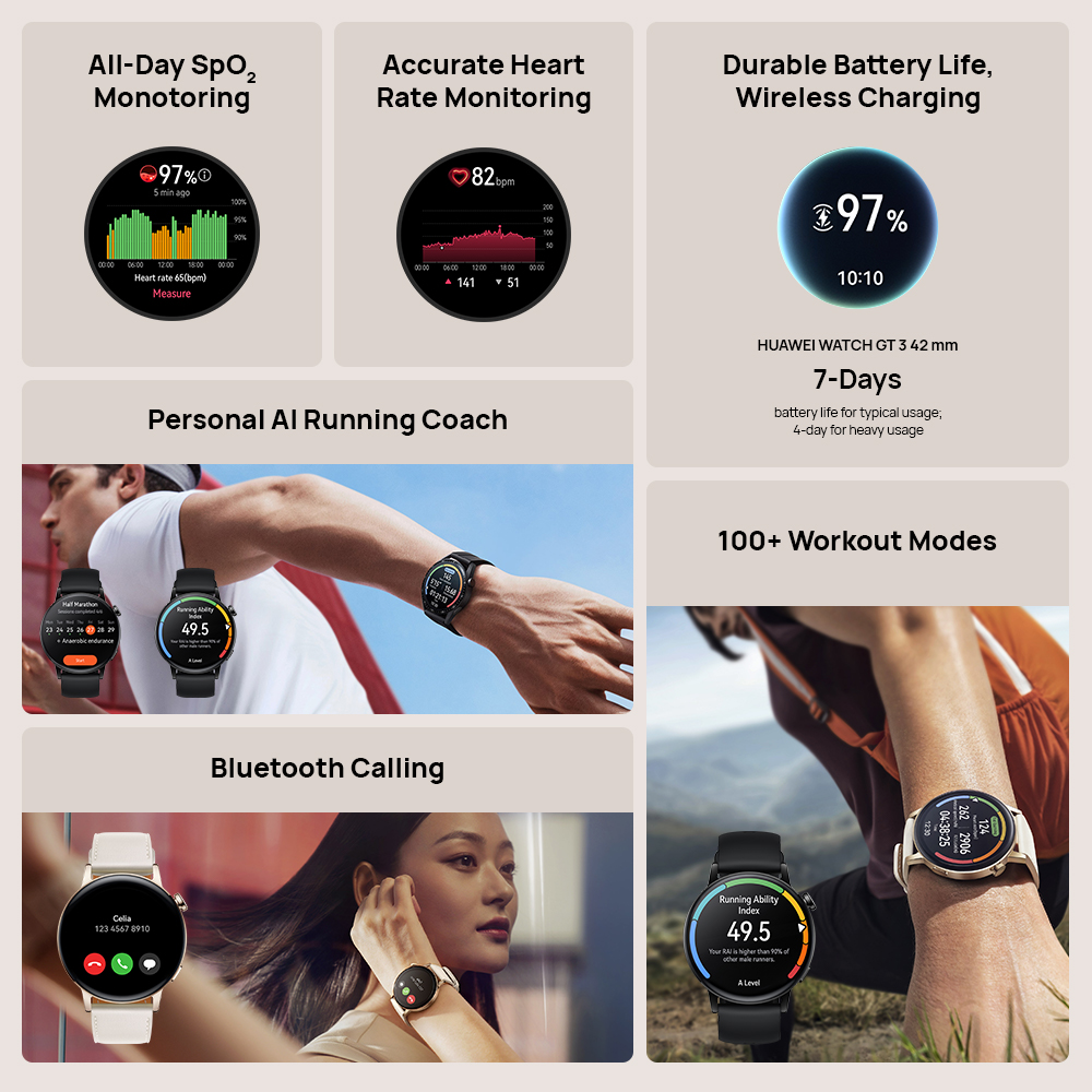 HUAWEI WATCH GT 3 42mm Smartwatch | All-day SpO2 Monitoring | AI Running Coach | 7-Day Battery Life