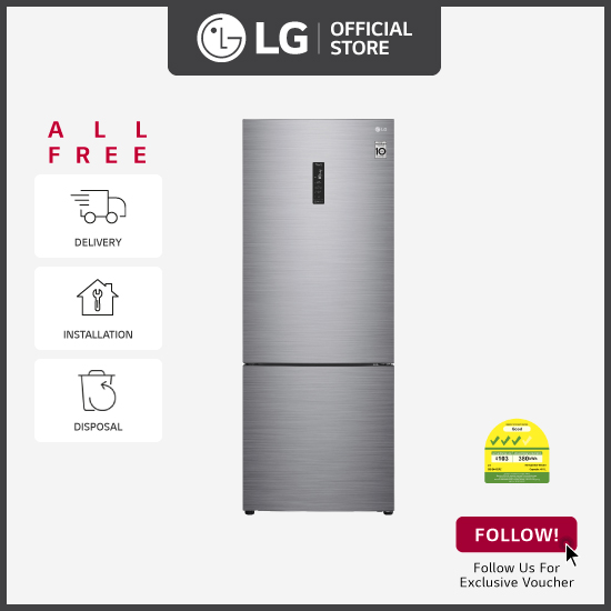 [Bulky] LG GB-B4452PZ Bottom Freezer Refrigerator, 451L, Platinum Silver + Free Delivery + Free Installation + Free Disposal