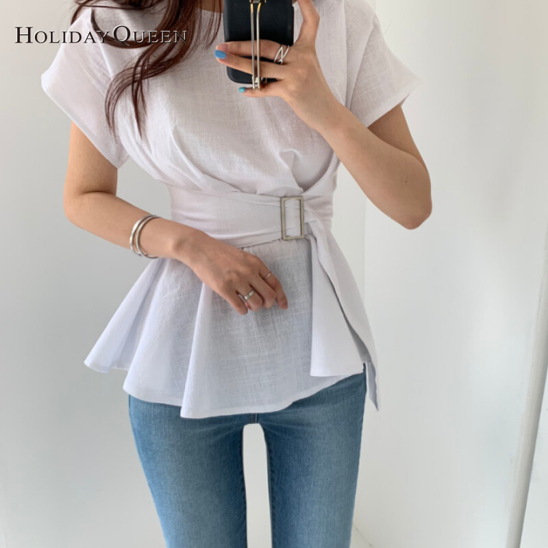 HolidayQueen 2022 New Niche Lotus Leaf Hem Thin Belt Thin Shirt One Size Free Shipping HQ1312