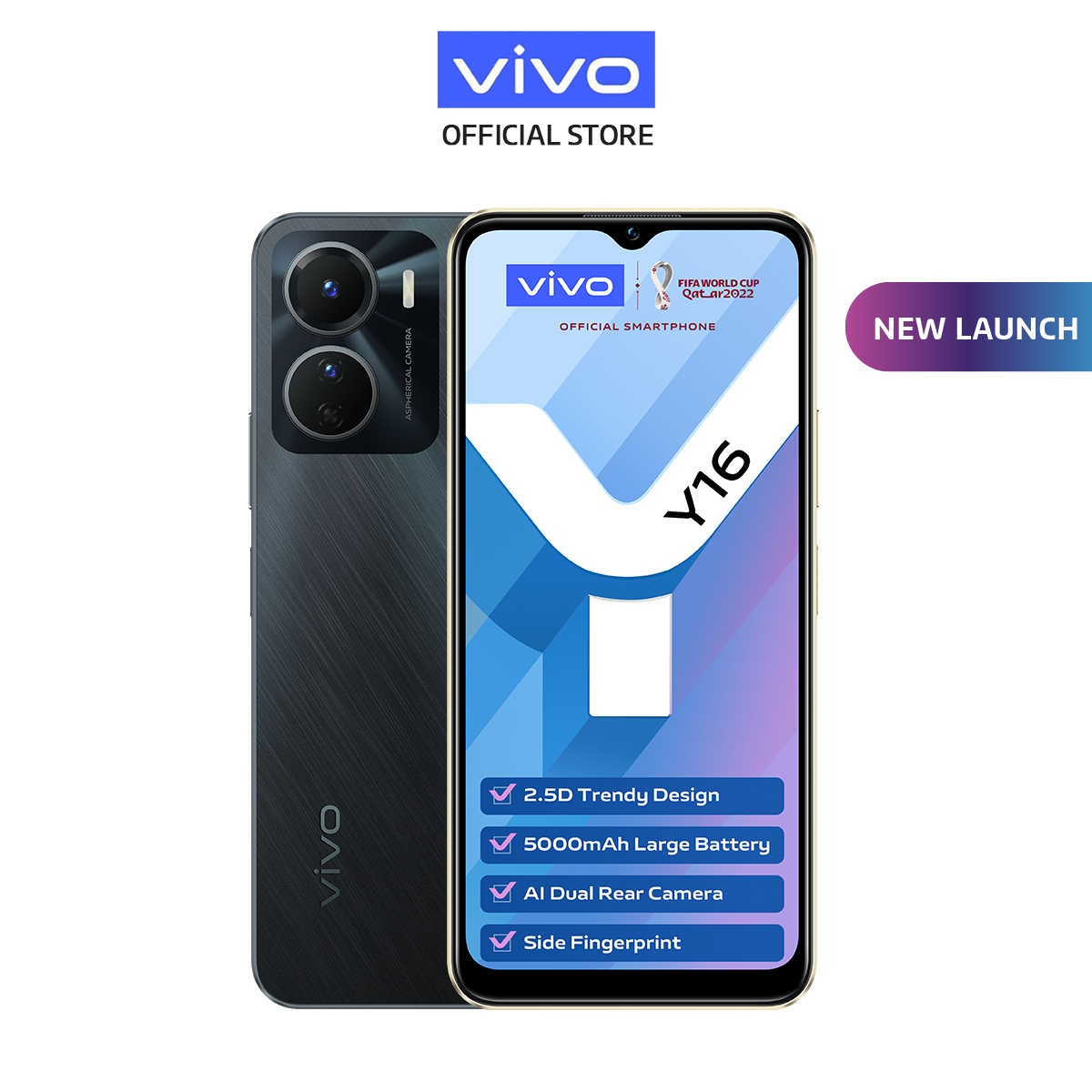 vivo Y16 [4GB+4GB Extended RAM/64GB] / 5000 mAH + 10W / AI Dual Camera / 2.5D Trendy Design