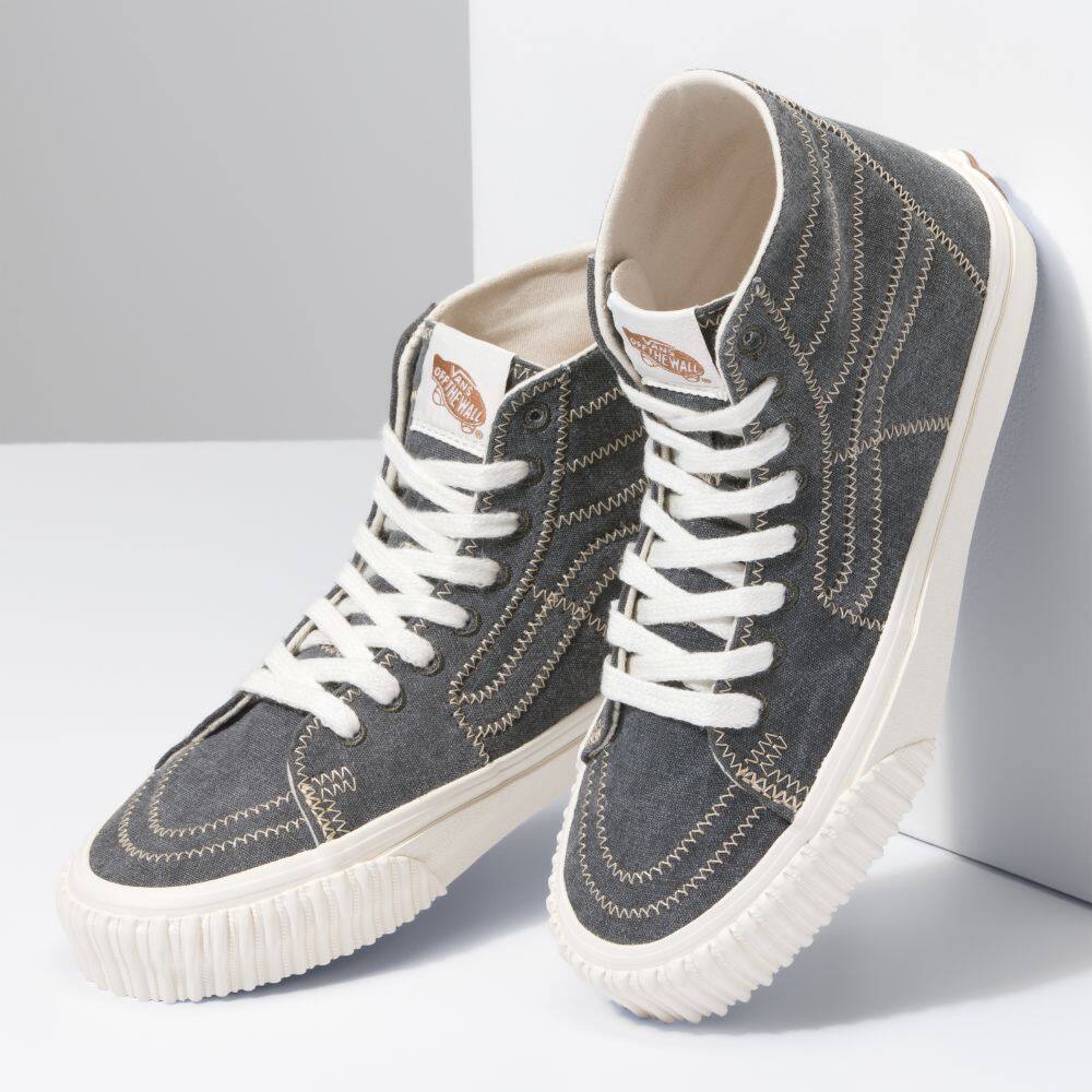 The Stone Wash Sk8-Hi Tapered, a deconstructed version of the classic lace-up high top, features a more slender and fitted silhouette than the traditional Sk8-Hi. It also includes sturdy textile uppers and signature rubber waffle outsoles.