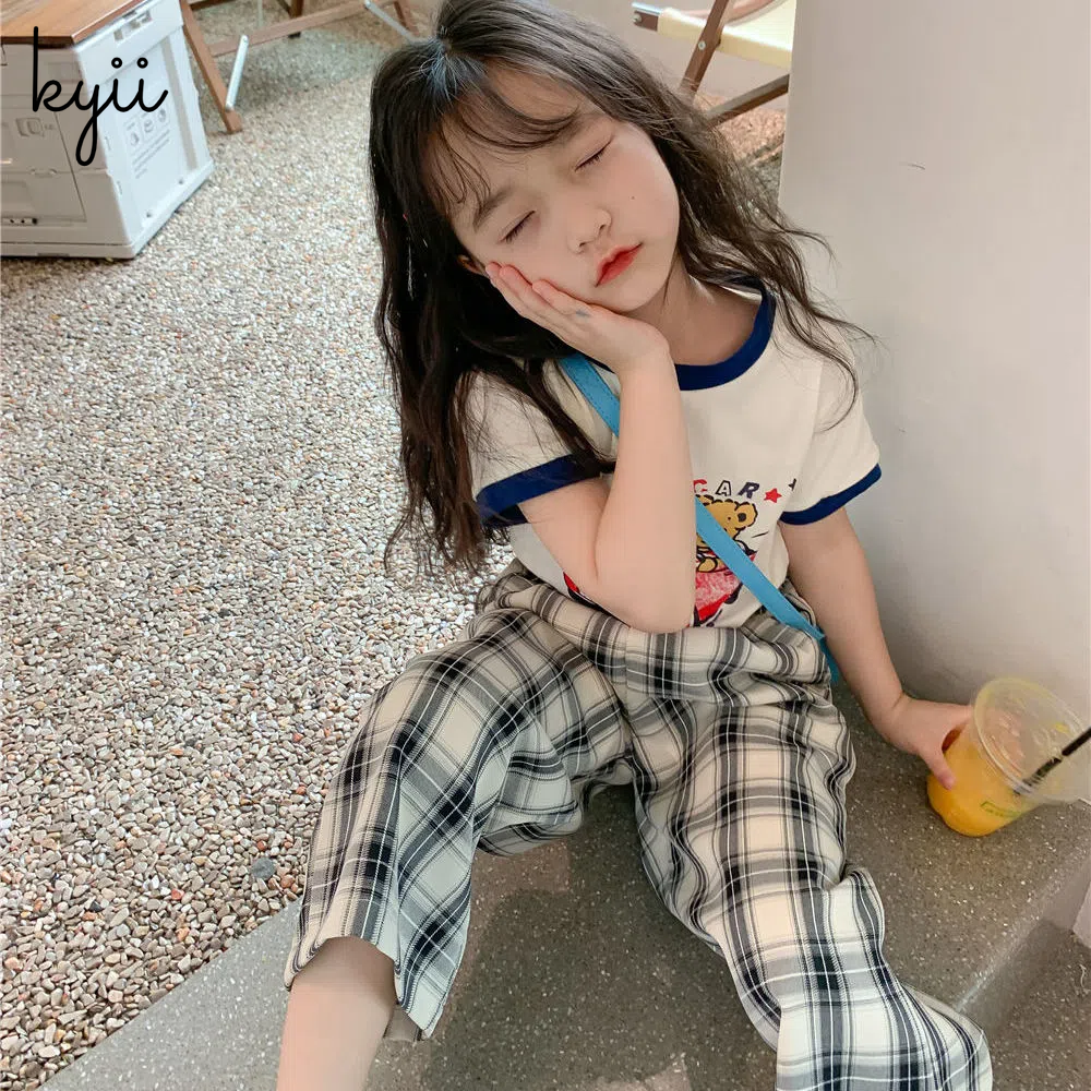 KYII Girl Summer children Korean Round-neck shirt Versatile short sleeve Top kyii0039