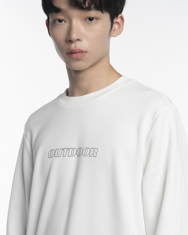 Regular Solid Coloured Long Sleeve Sweatshirt with Round Neck. Comes with Outdoor Slogan text in outline at the front. Made of cotton.