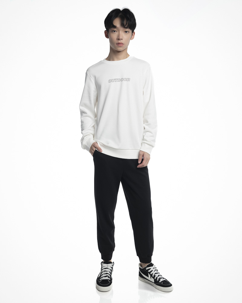 Yishion Men Solid Coloured Long Sleeve Sweatshirt with Outdoor Slogan (White)