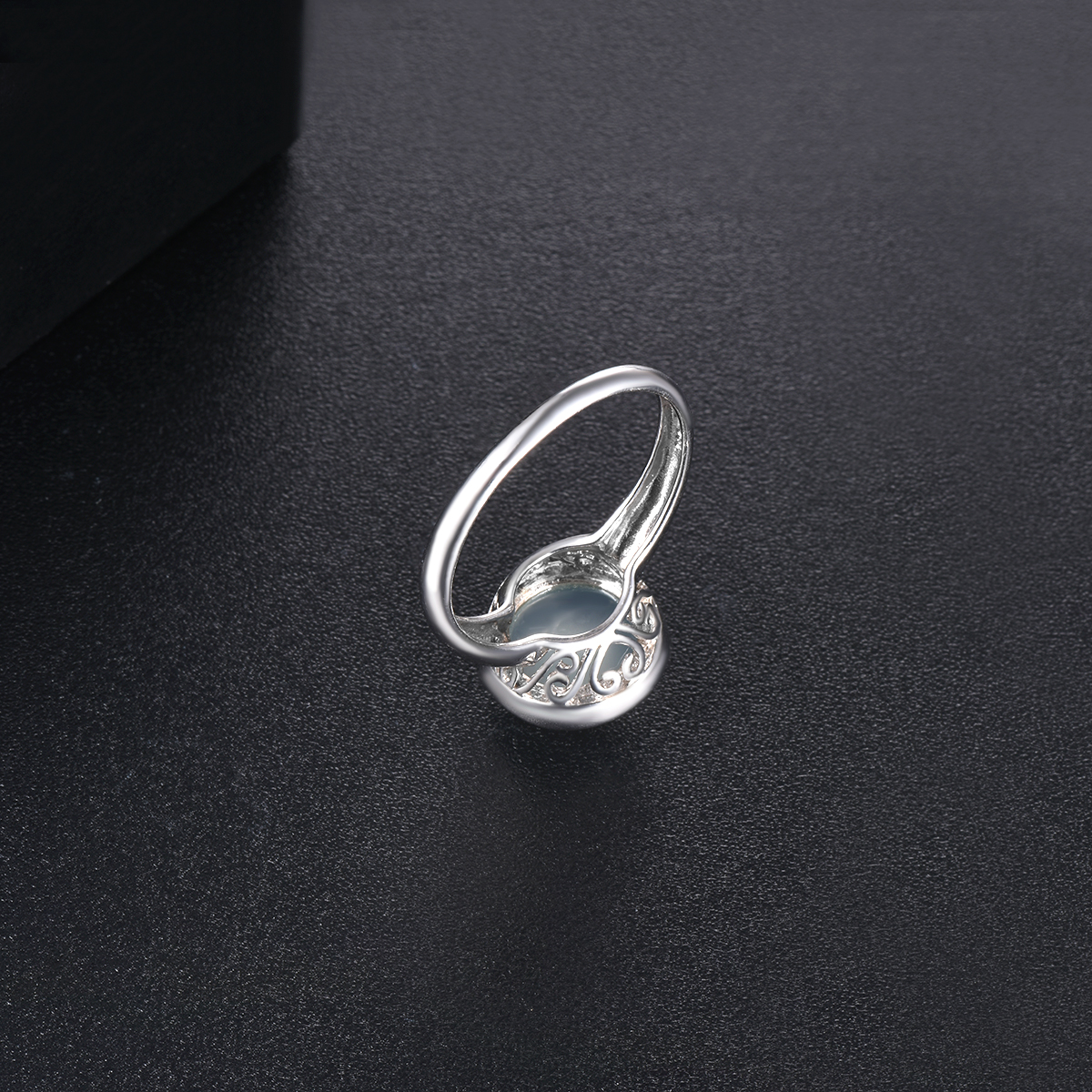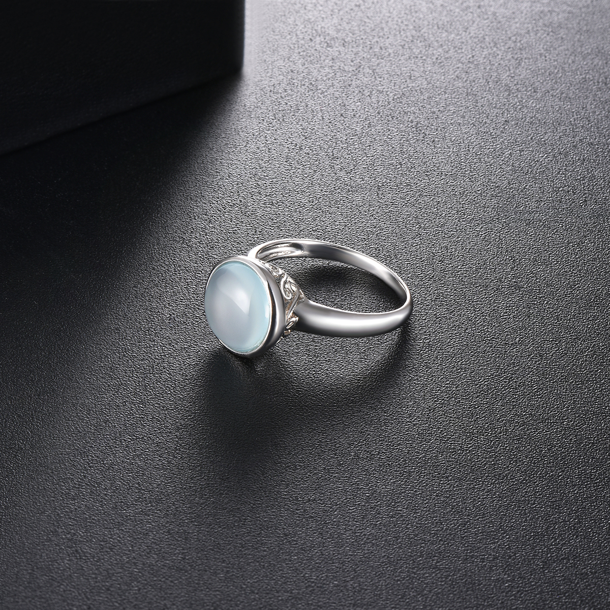Real 925 Sterling Silver Simple Design Women's Chalcedony Wedding Ring