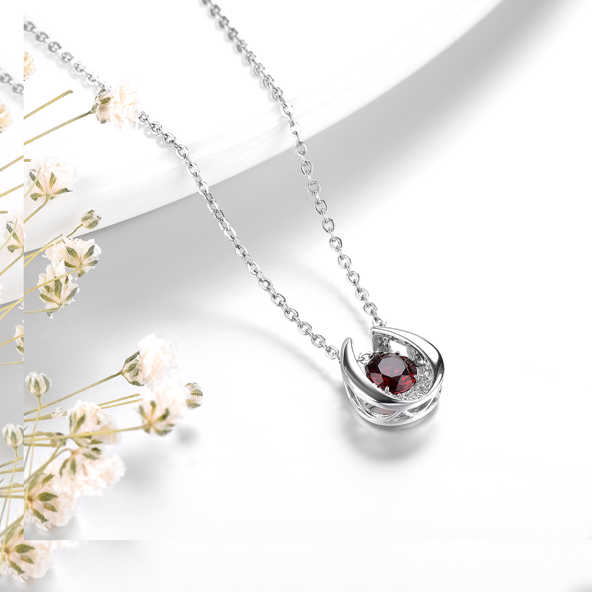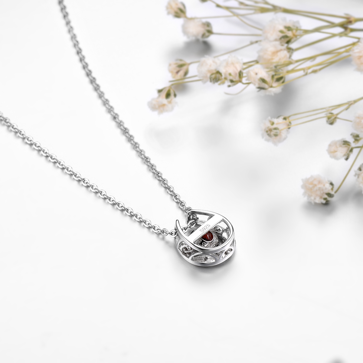 Real Solid 925 Sterling Silver Natural Garnet Pendant Gemstone Pendant For Women 925 Silver Jewelry Gifts Birthday