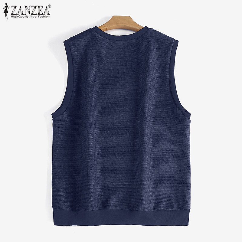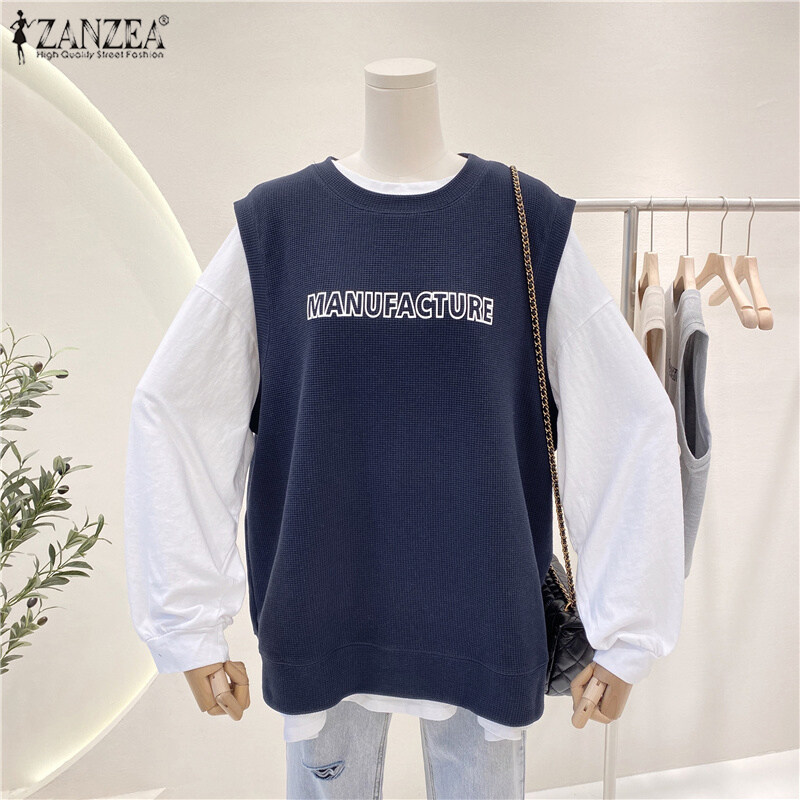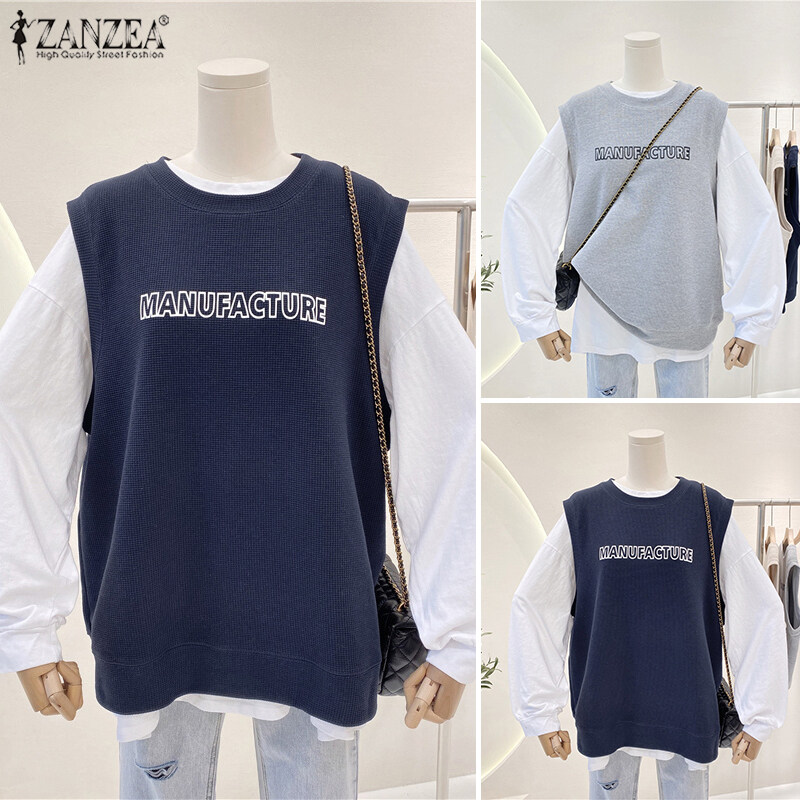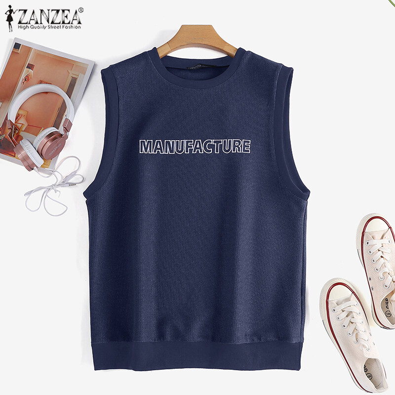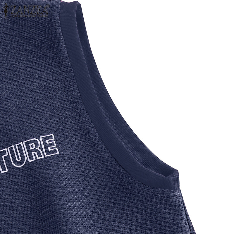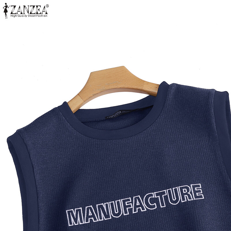 ZANZEA Women's Simple Latter Embroidery Solid Tanks Sleeveless Crew Neck Knitted Vests #4