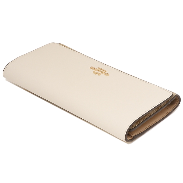 Coach Wallet In Gift Box Long Wallet Slim Trifold Wallet In Signature Canvas Light Khaki Chalk Off White # C5966